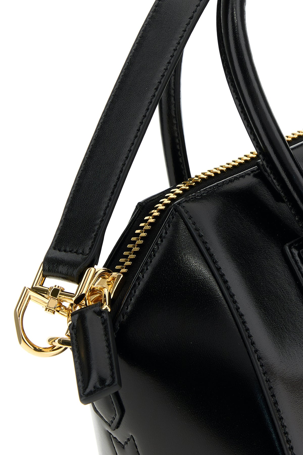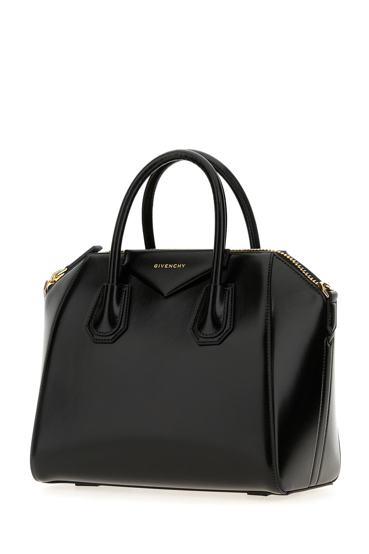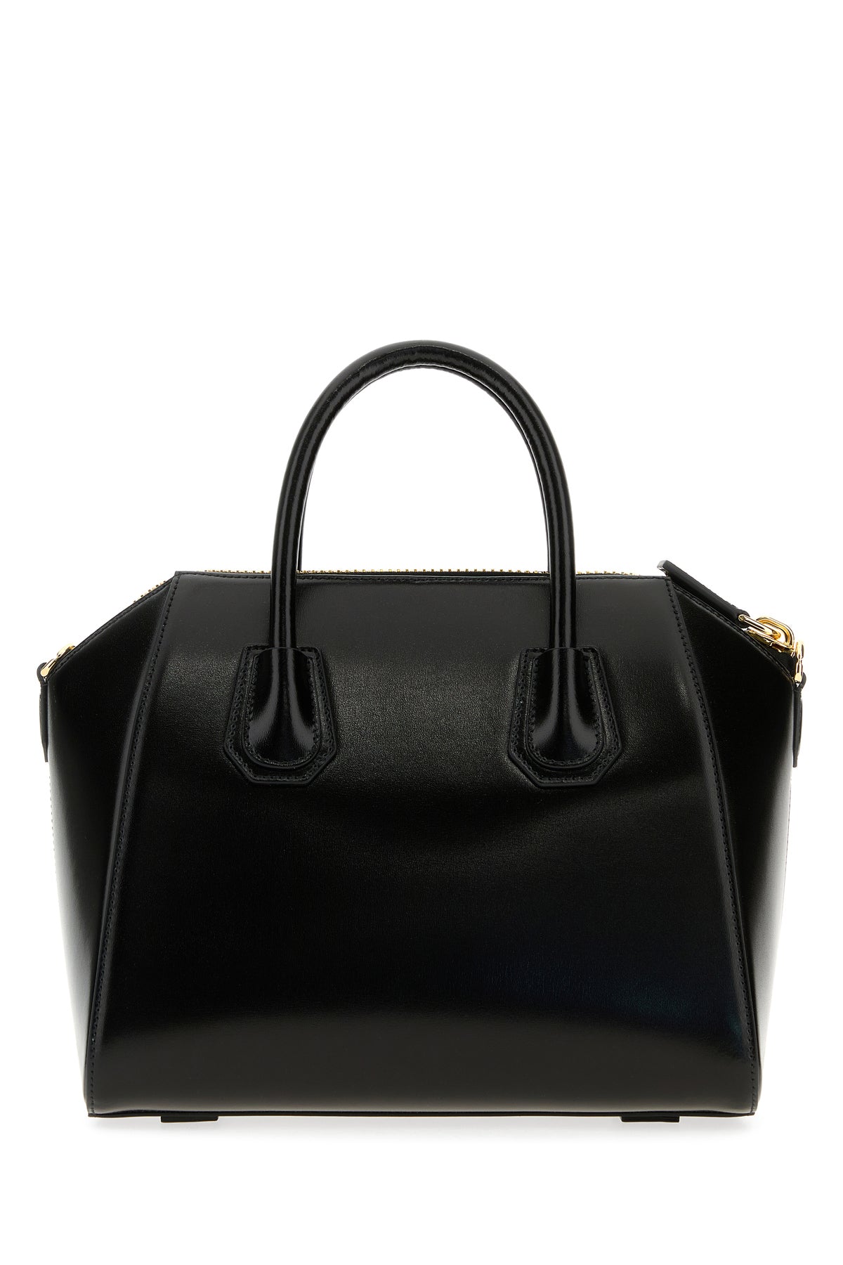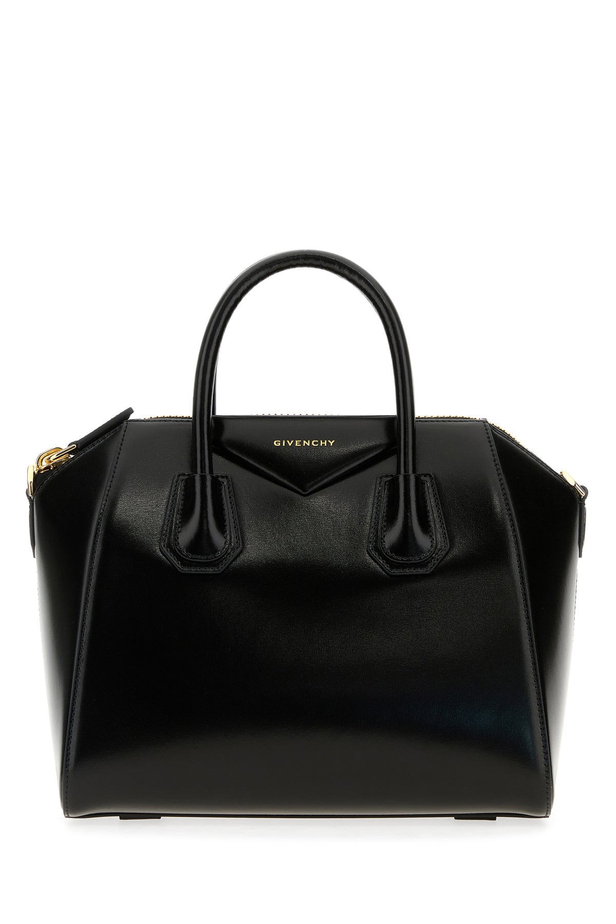 Handbag realized in smooth calf leather enriched by metal lettering logo at the front.