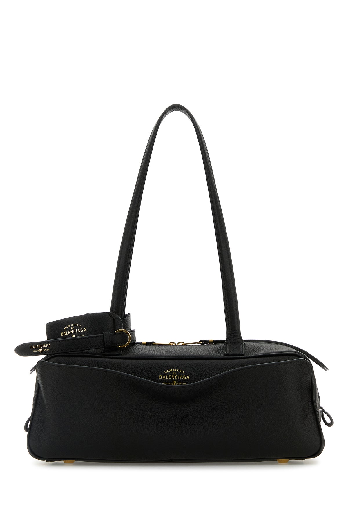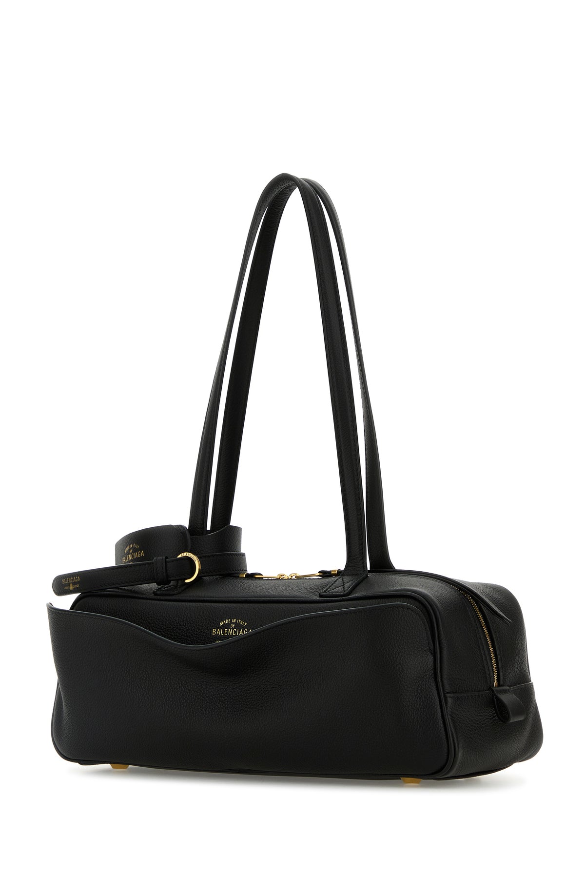 Shoulder bag realized in calf pebble leather characterized by laminated printed logo at the front enriched by detachable leather accessory.