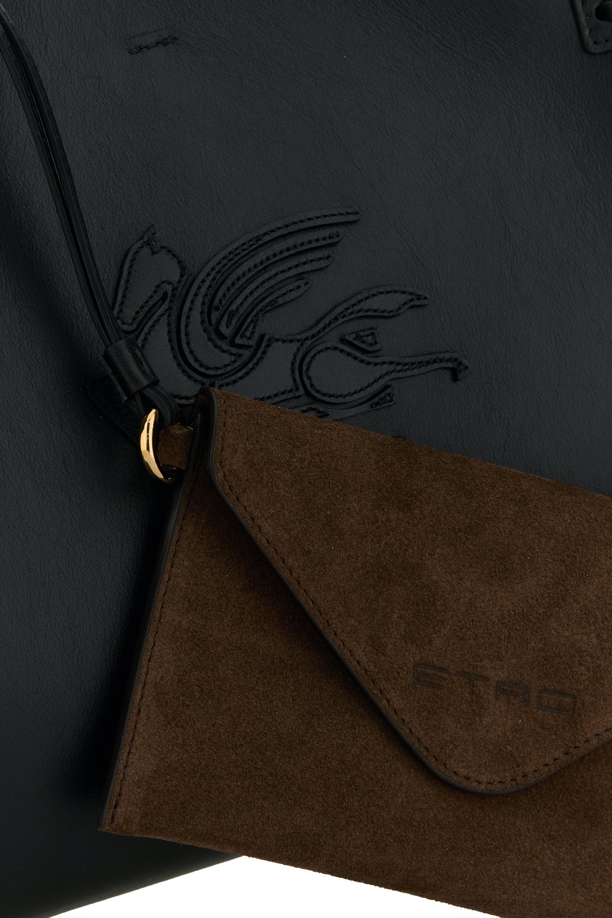 Shopping bag realized in slightly pebble calf leather enriched by tonal Pegaso patch at the front.