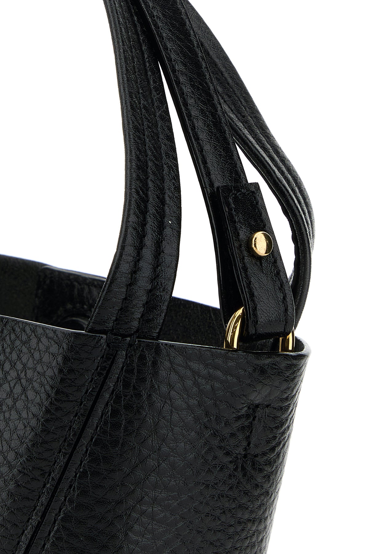 Shopping bag realized in pebble calf leather characterized by laminated printed logo at the front enriched by detachable metal accessory with logoed charms.