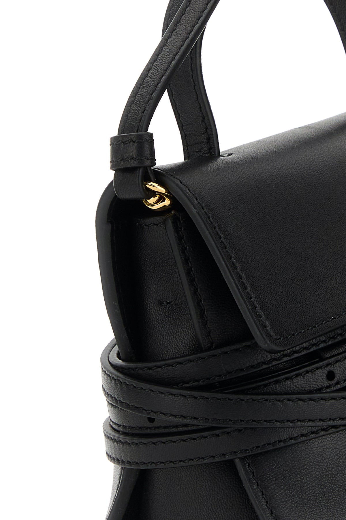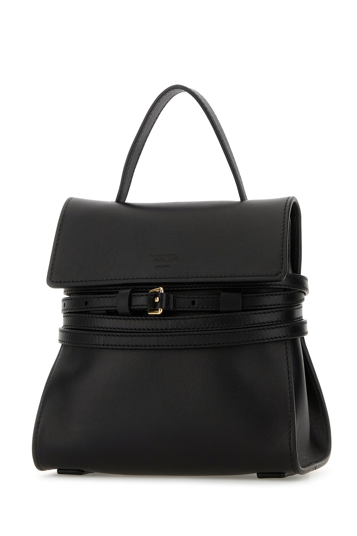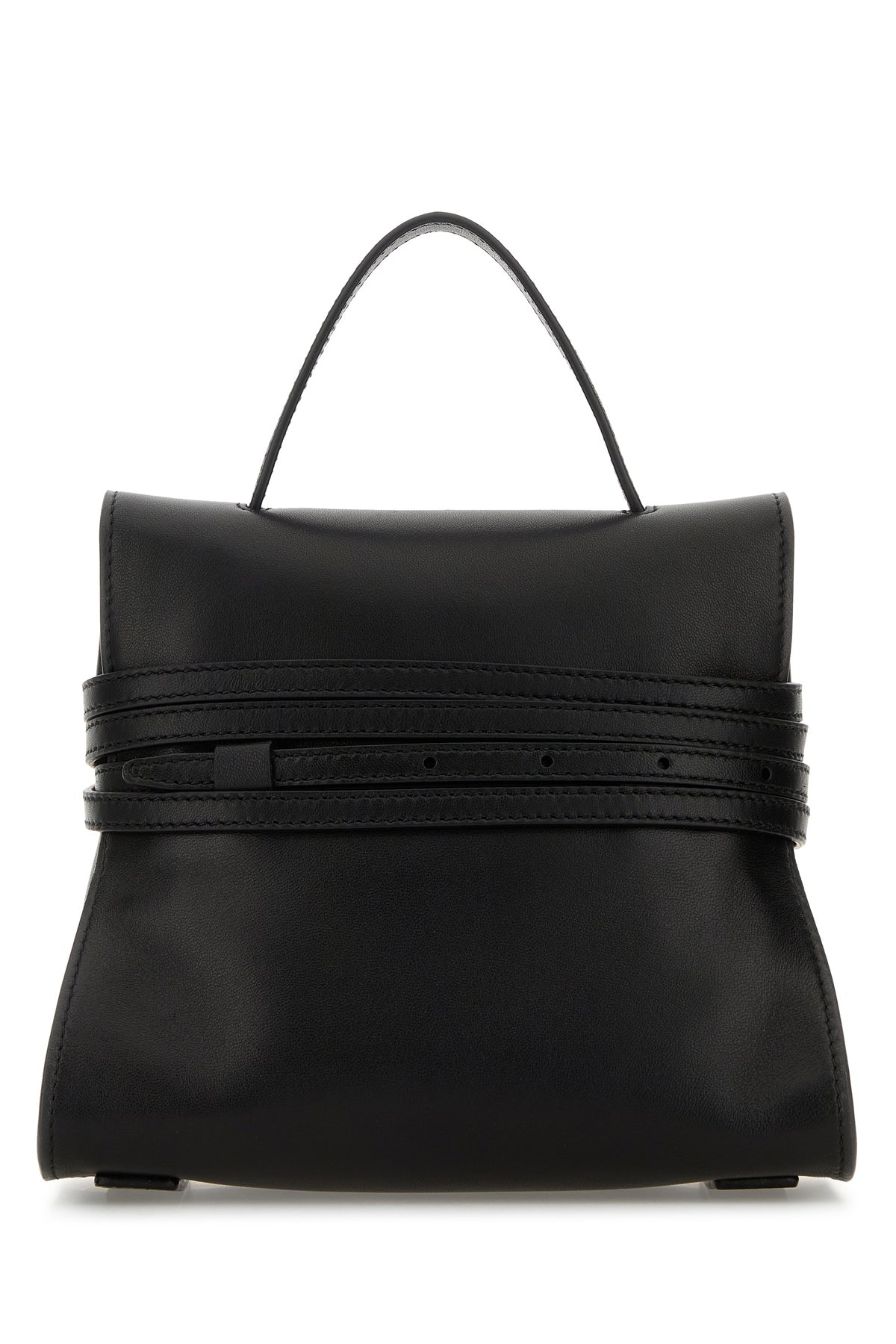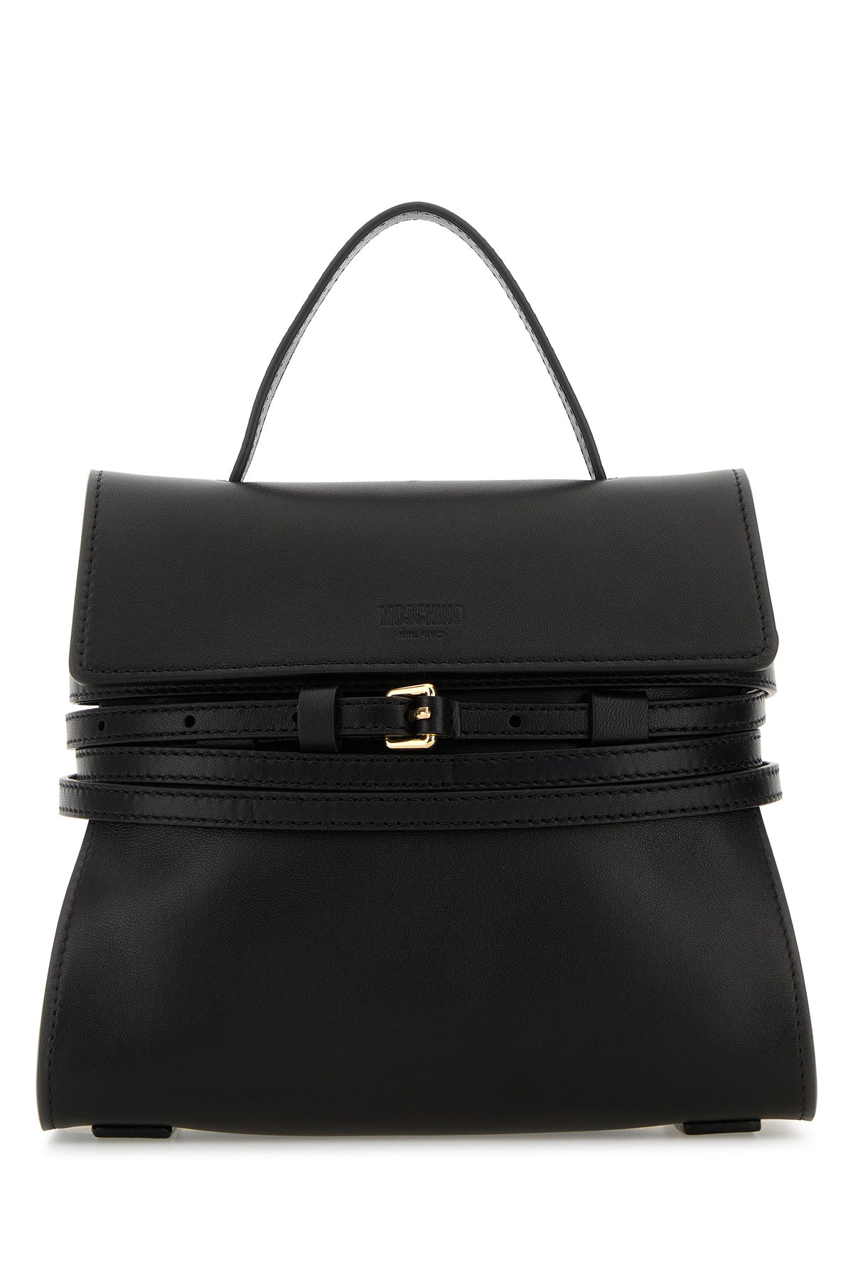 Handbag realized in slightly pebble leather characterized by embossed logo on the flap enriched by decorative tonal leather belt.