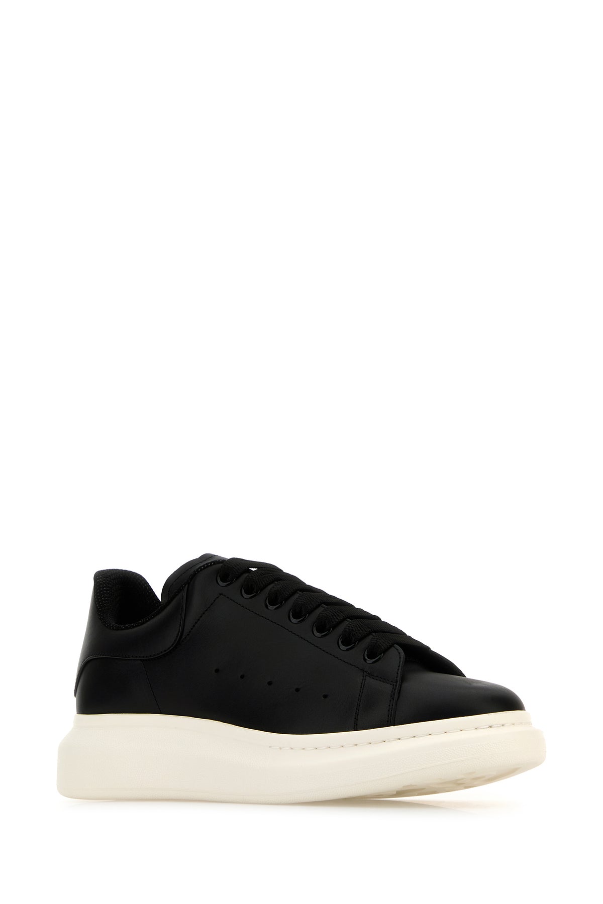 Black leather sneakers with black leather heel
