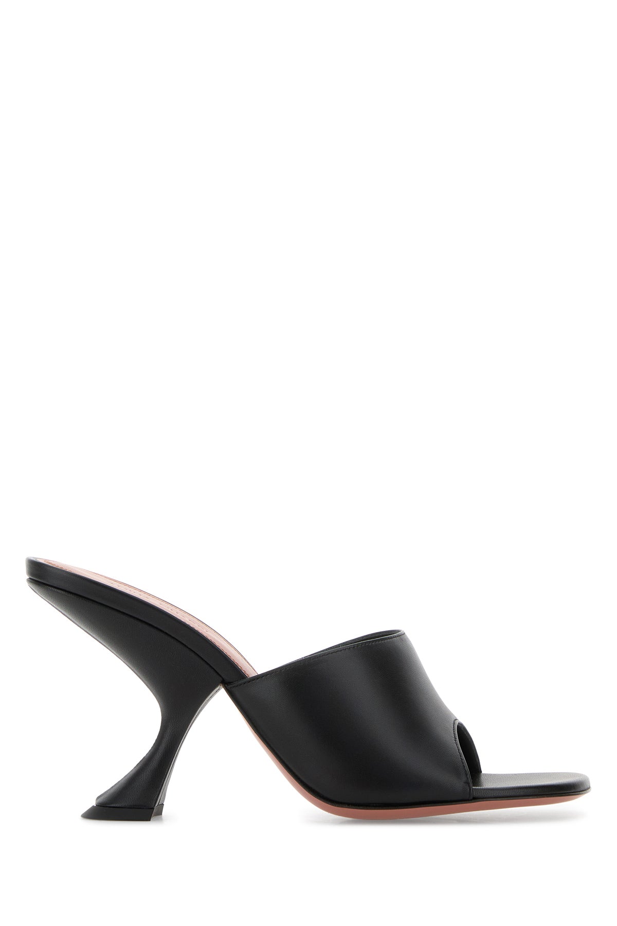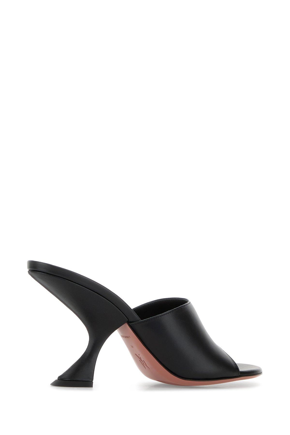 Mules realized in pebble leather characterized by peculiar heel.