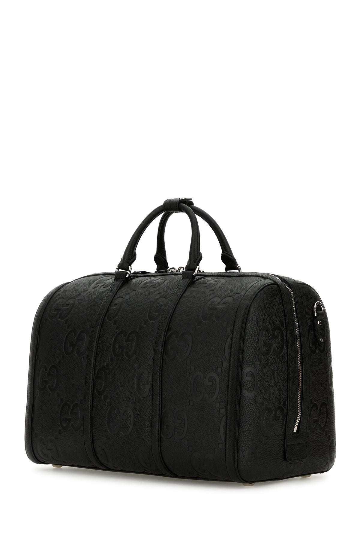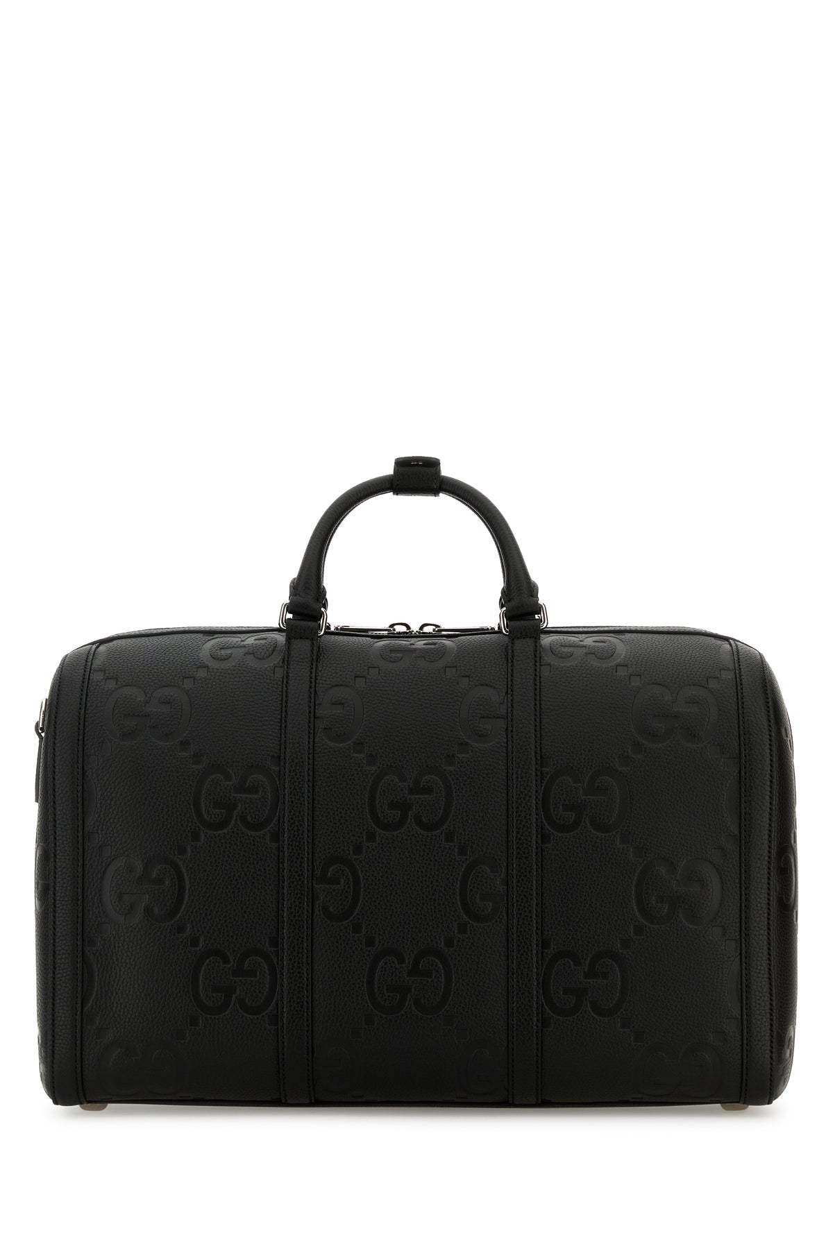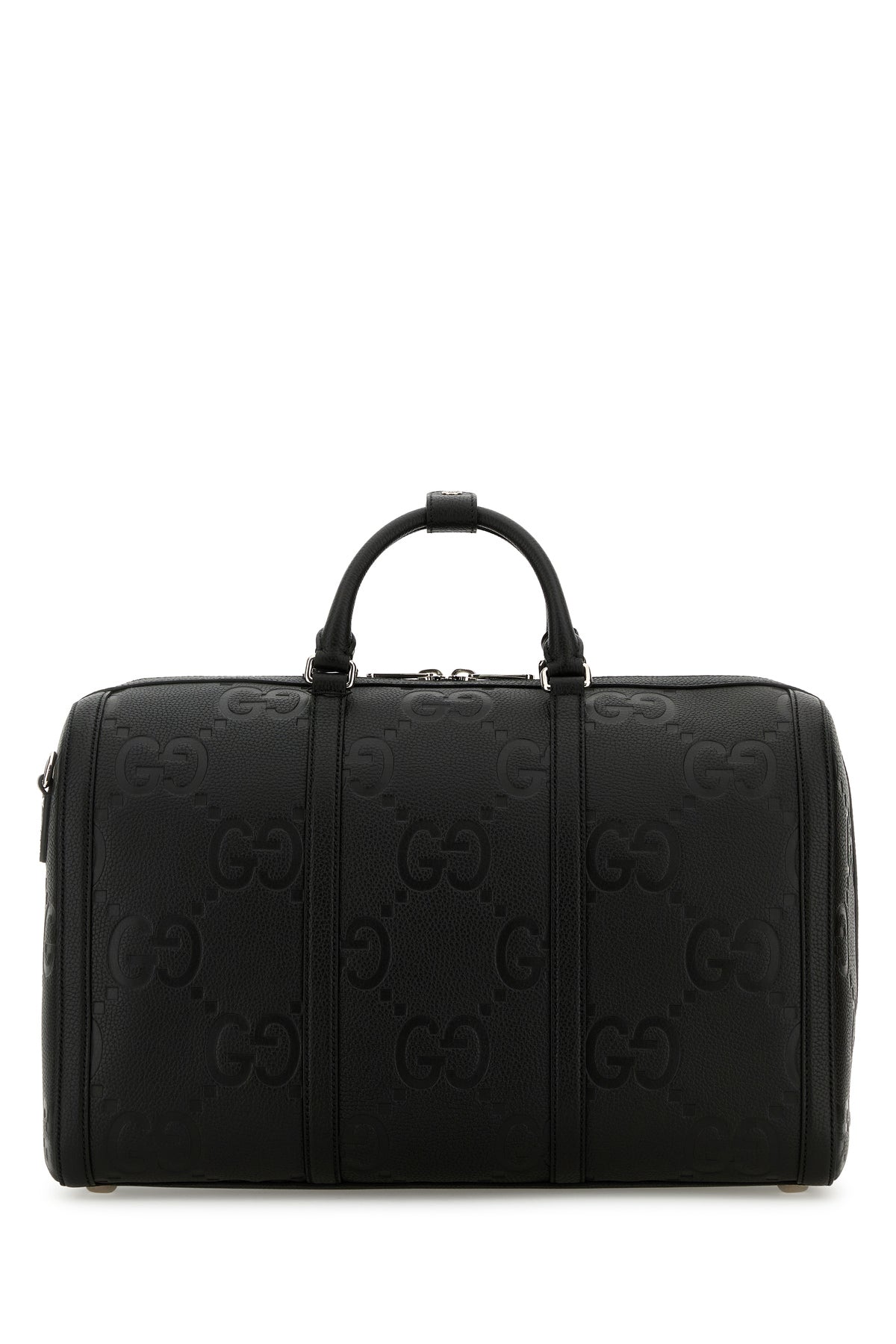 Travel bag realized in pebble leather characterized by embossed Jumbo GG on the entire surface enriched by detachable tonal leather accessories.