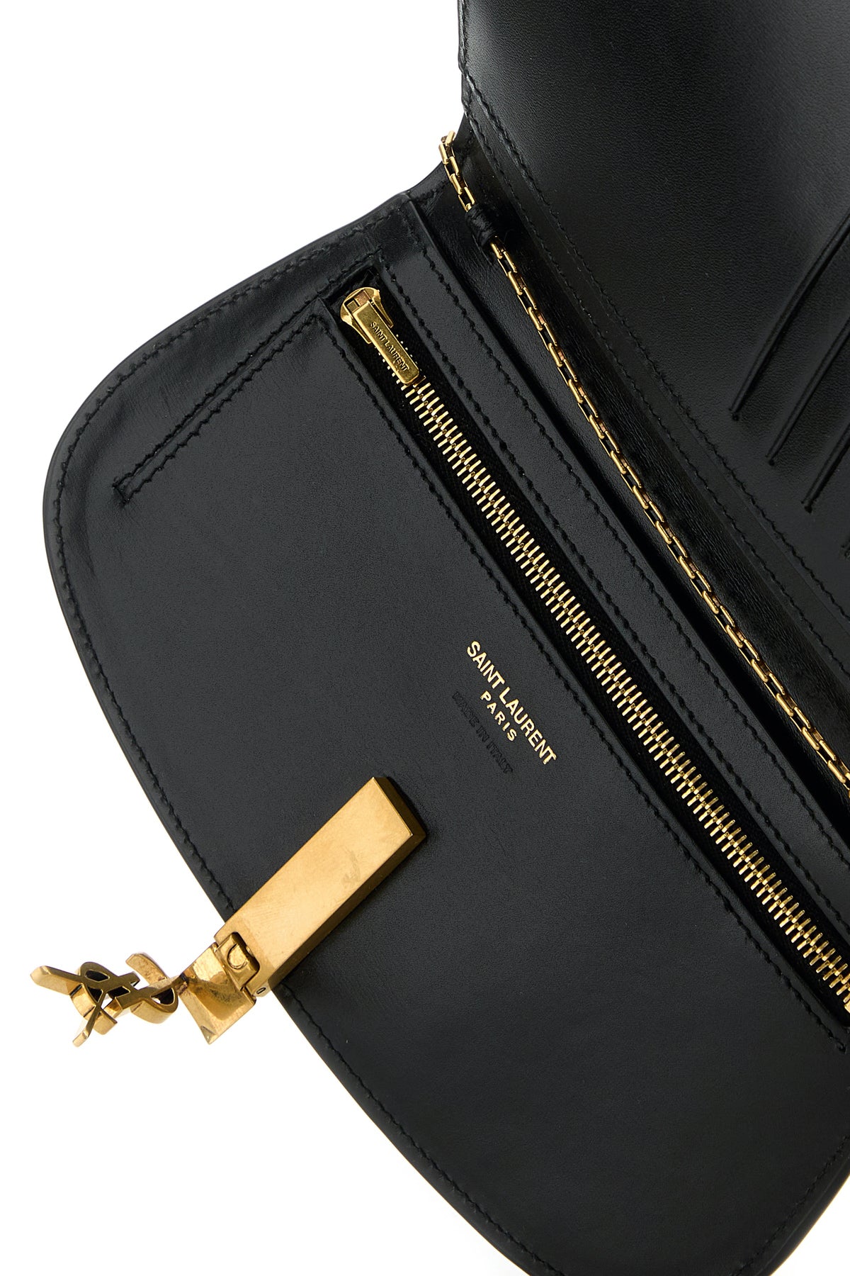 - Interior with a slit pocket, a zip pocket and eight credit card slots