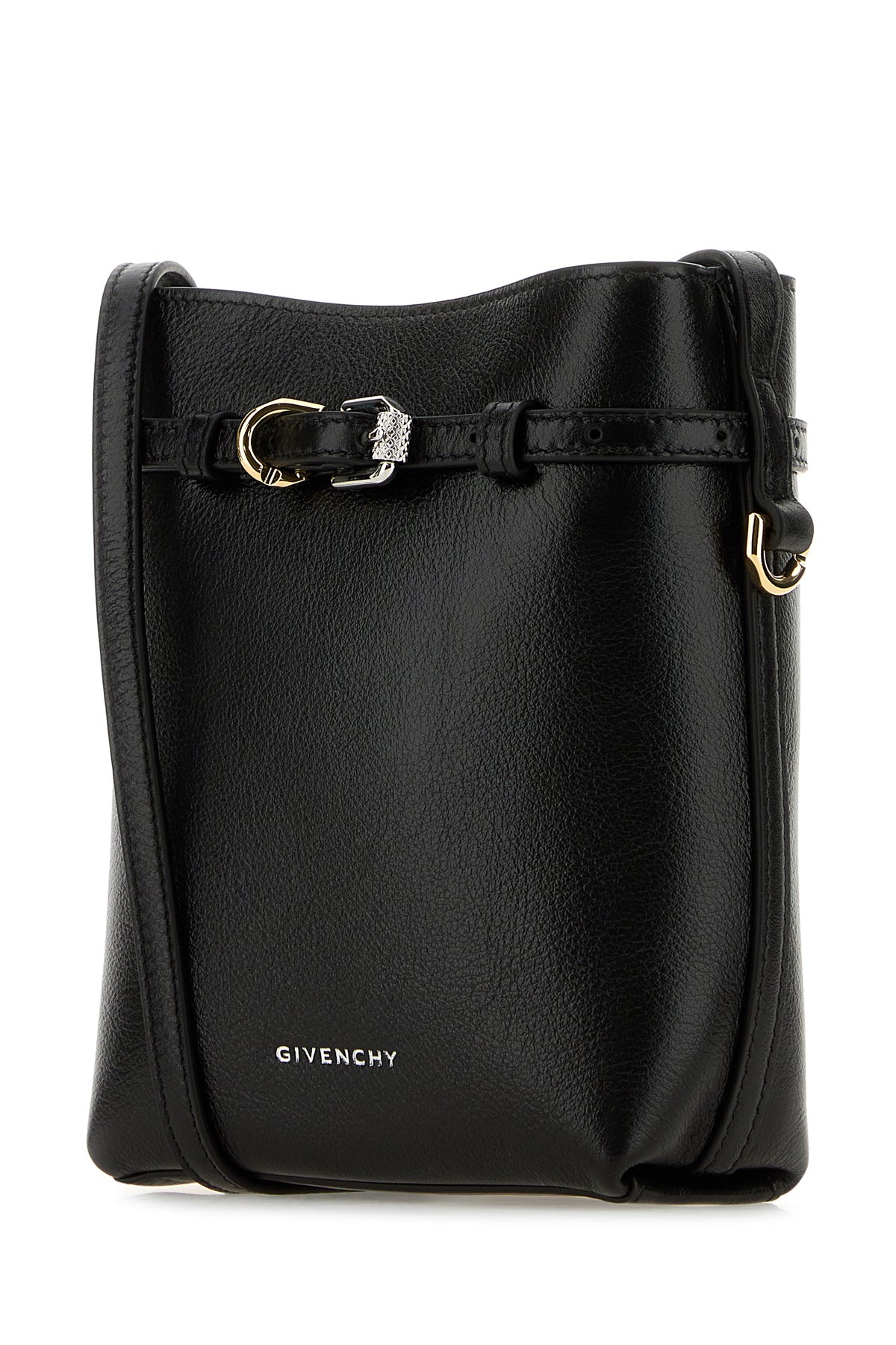 Phone case realized in polished-finish pebble leather characterized by laminated printed logo at the front enriched by adjustable strap with metal buckle at the front.