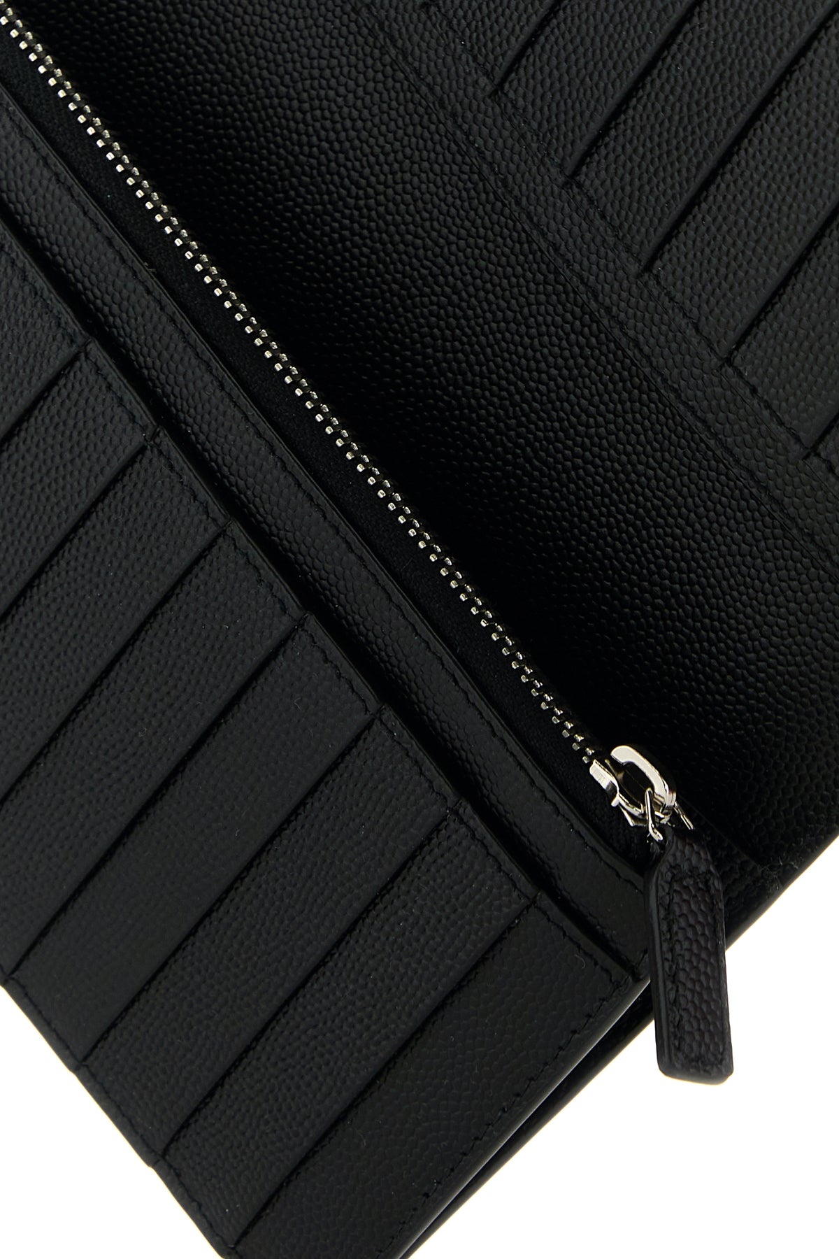 Wallet realized in pebble leather characterized by laminated printed logo at the front.