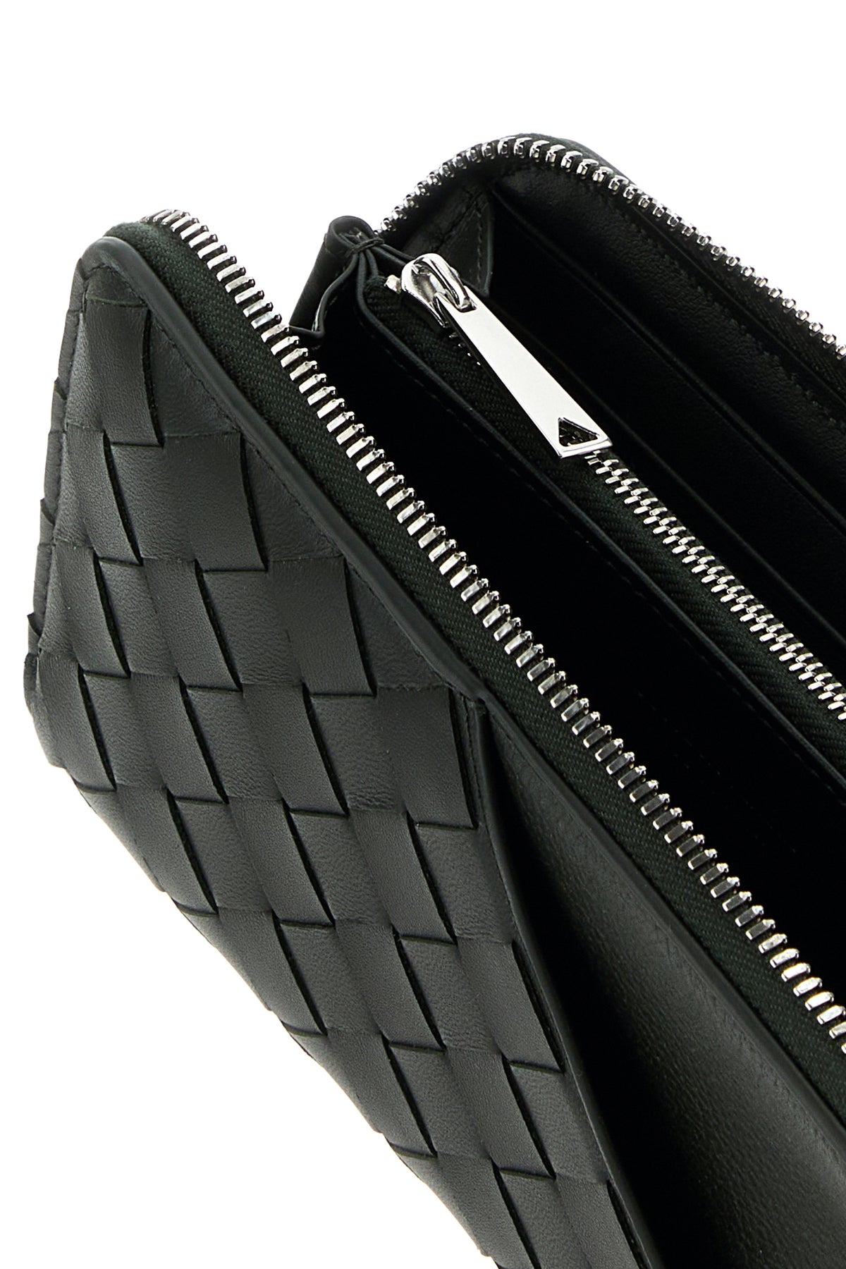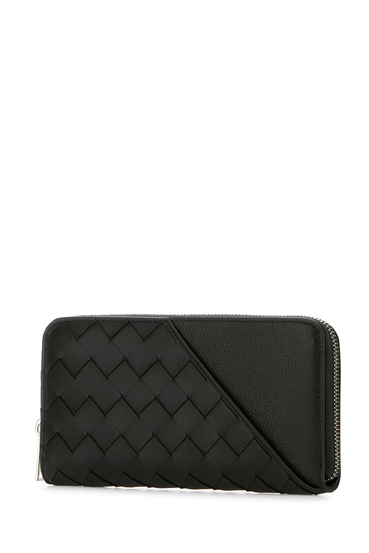 Wallet realized in leather characterized by iconic Intrecciato motif on the entire surface.