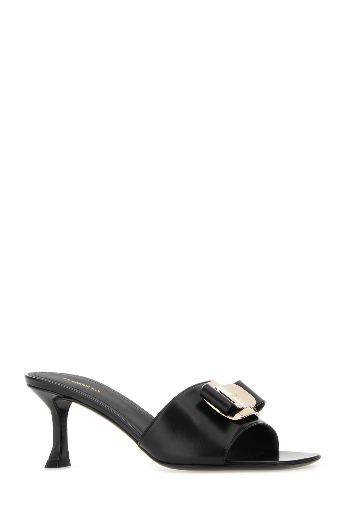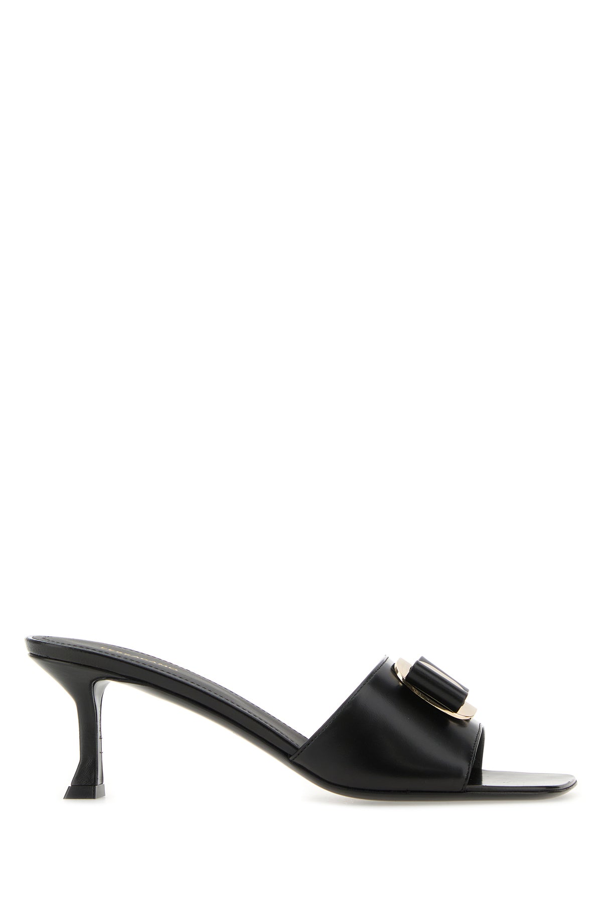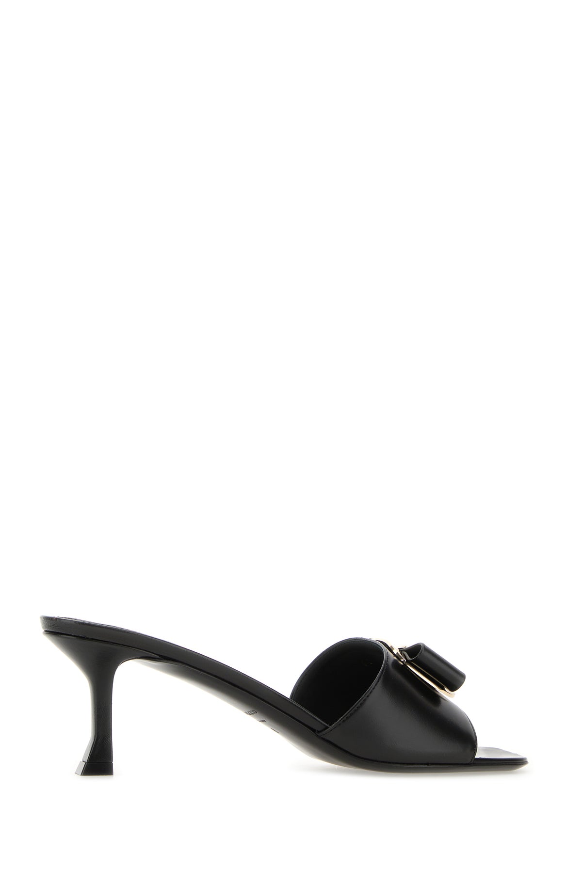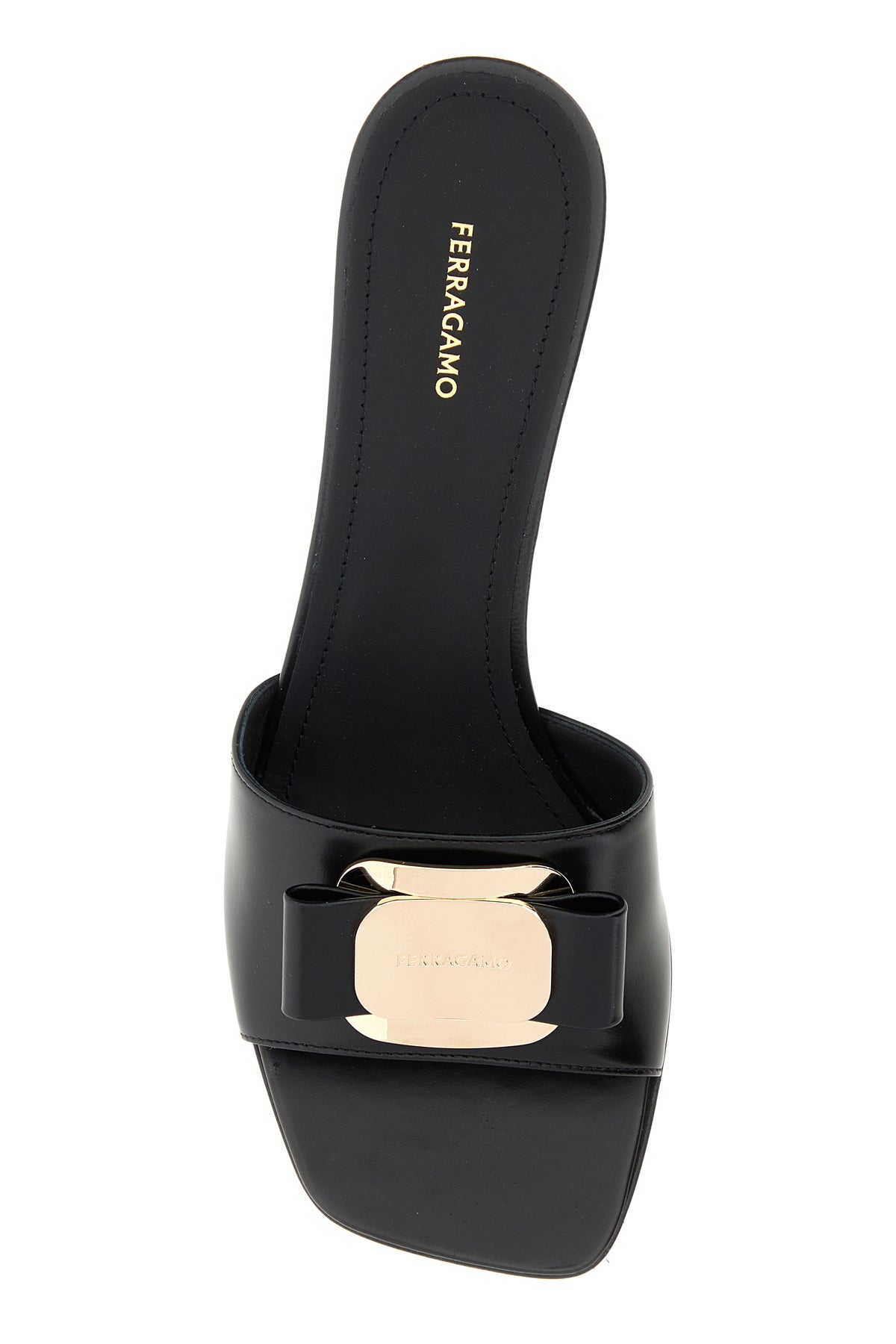Mules realized in smooth leather enriched by decorative tonal leather bow with logoed metal detail on the band.