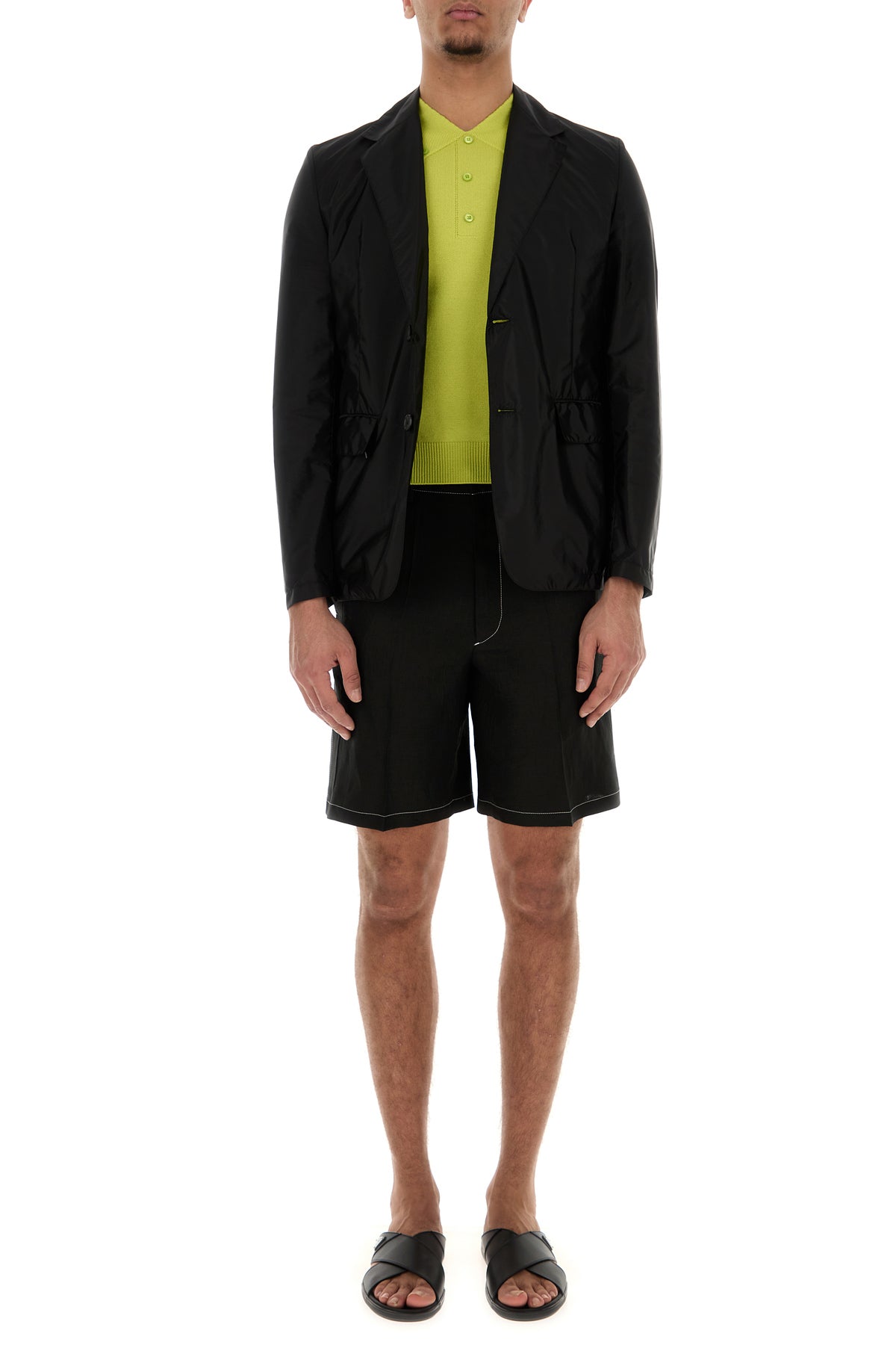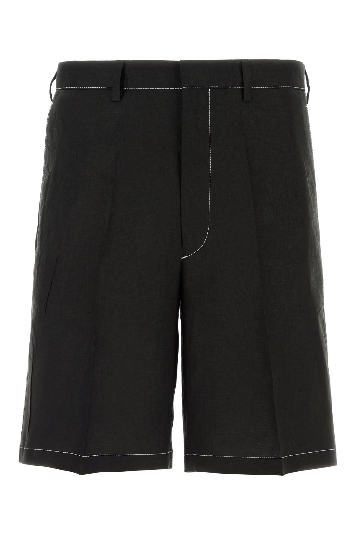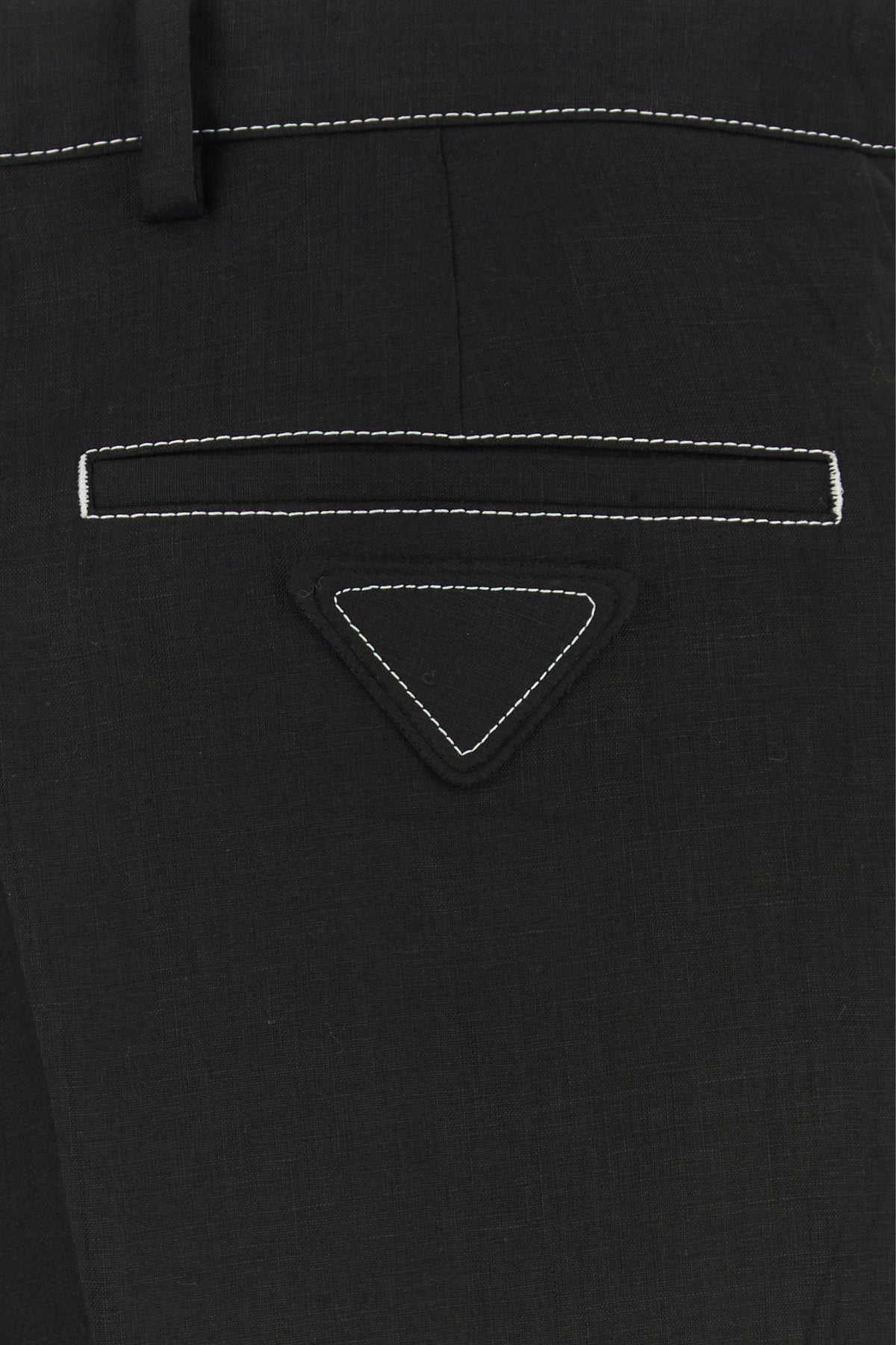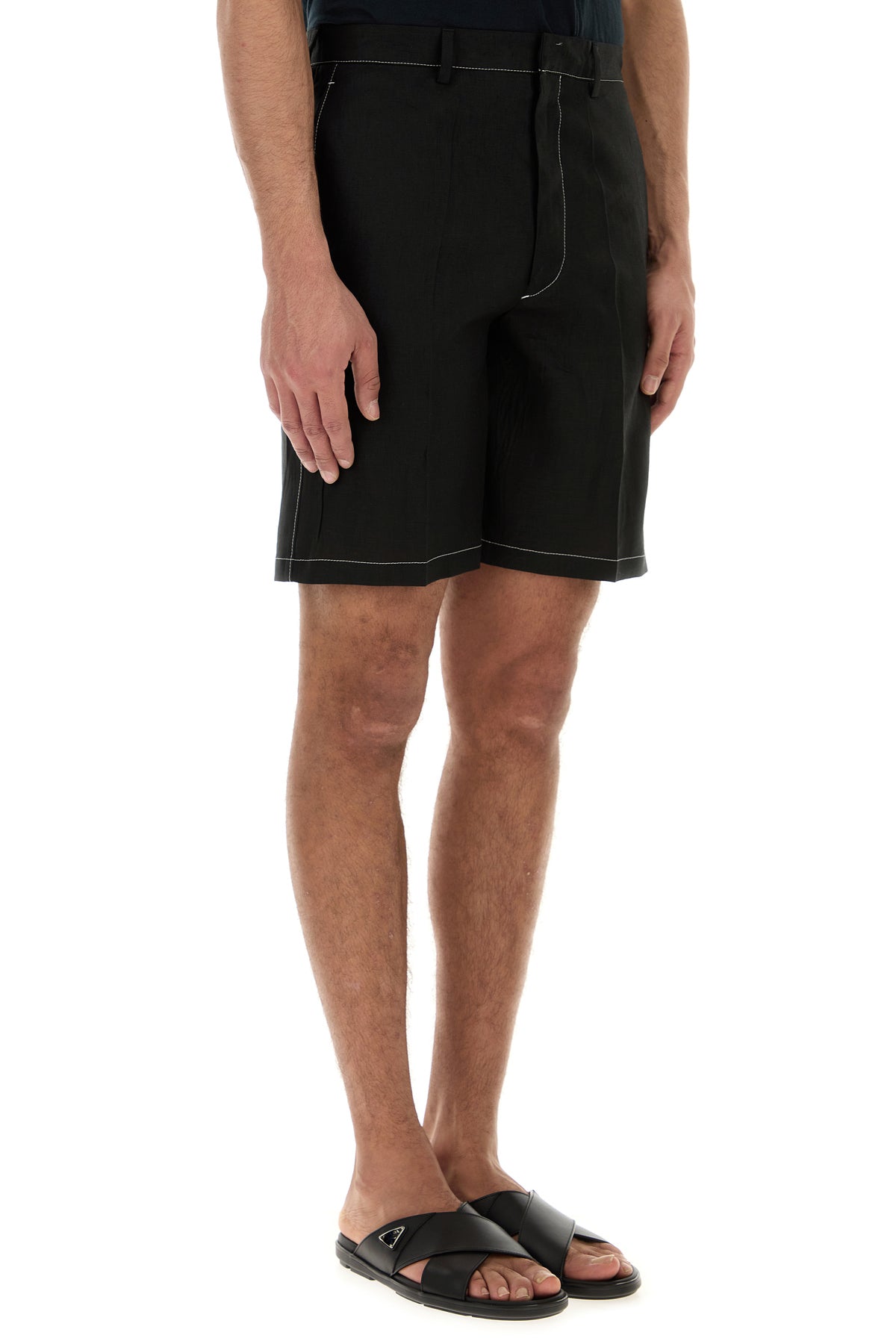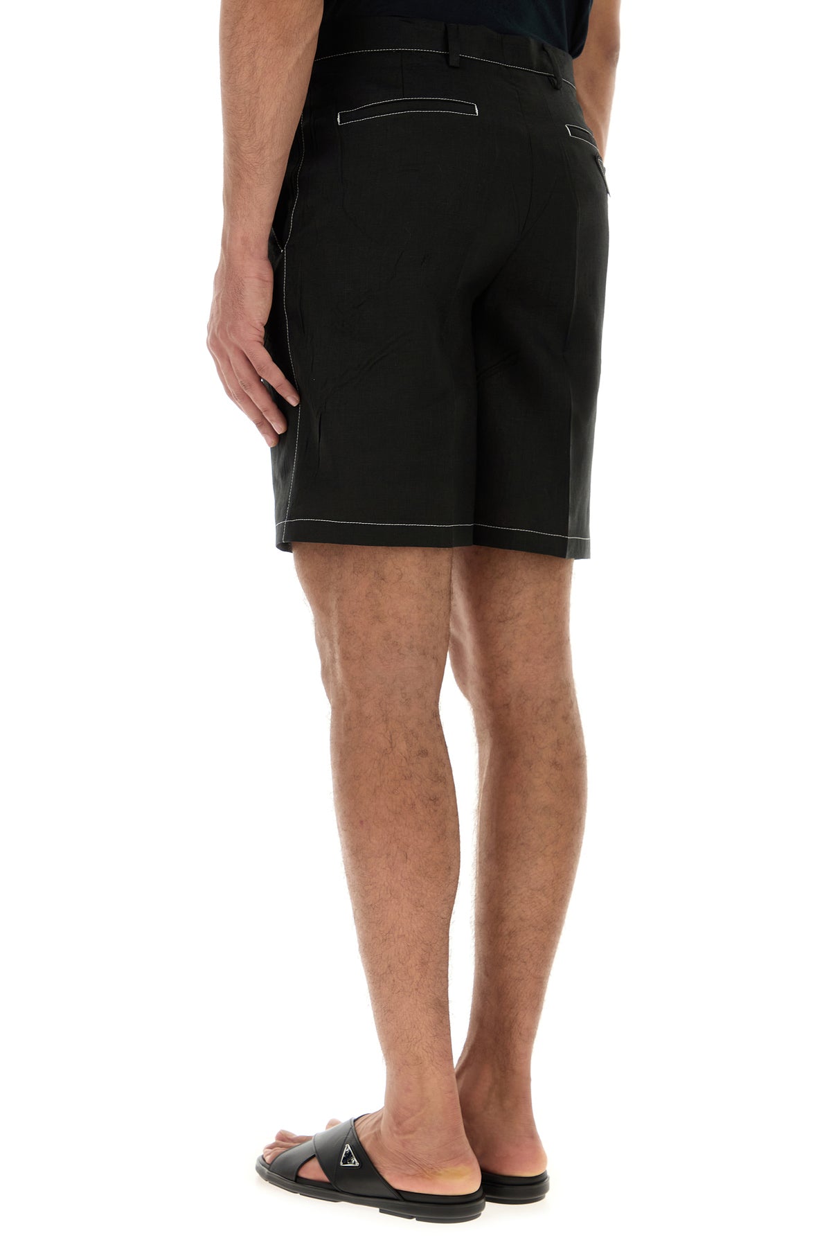 Bermuda shorts realized in pure linen enriched by iconic tonal fabric triangle at the back.