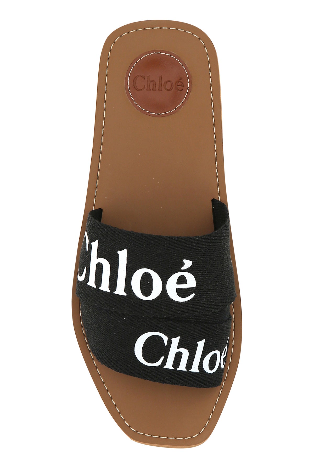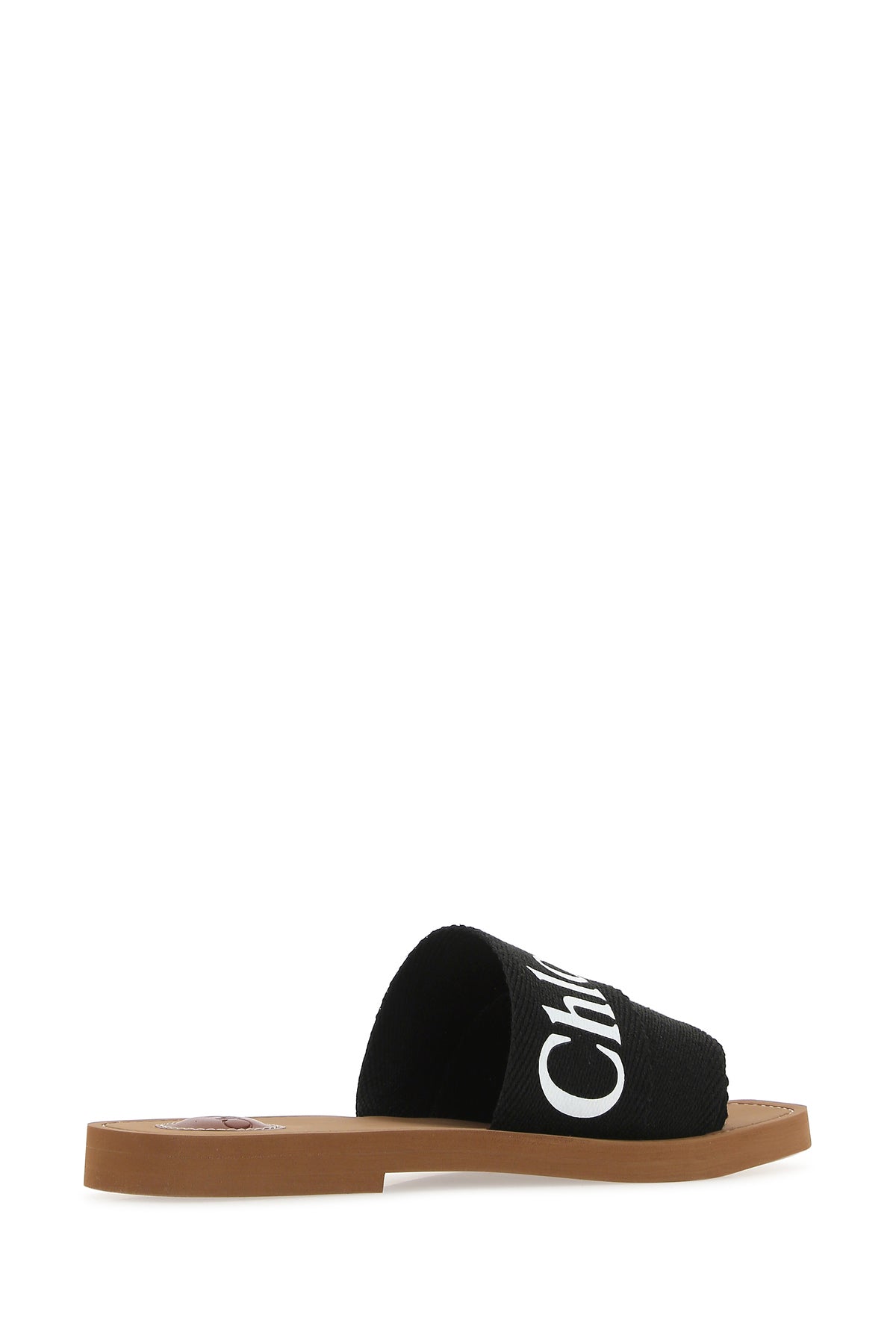 Slippers realized in linen characterized by contrasting printed logo.