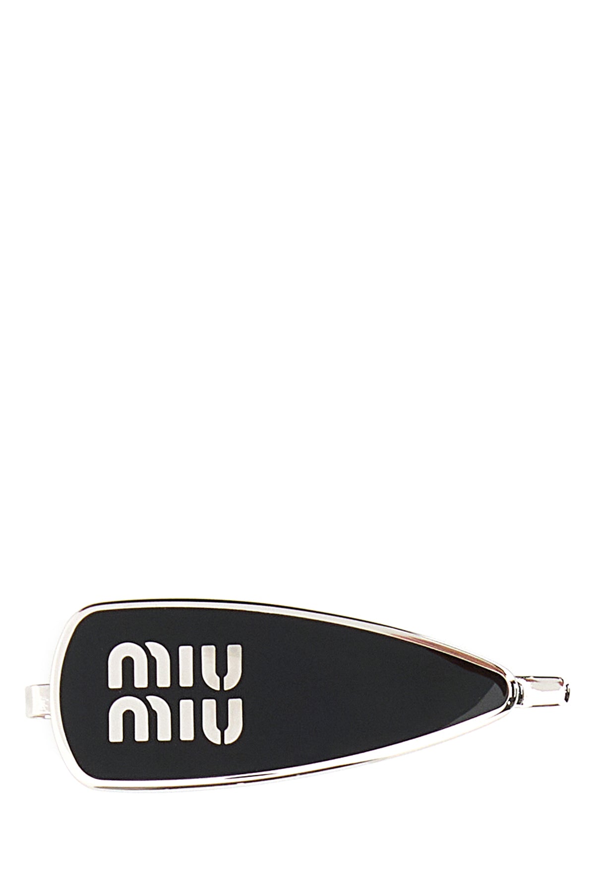 Hair clip realized in enameled metal characterized by printed logo at the front.