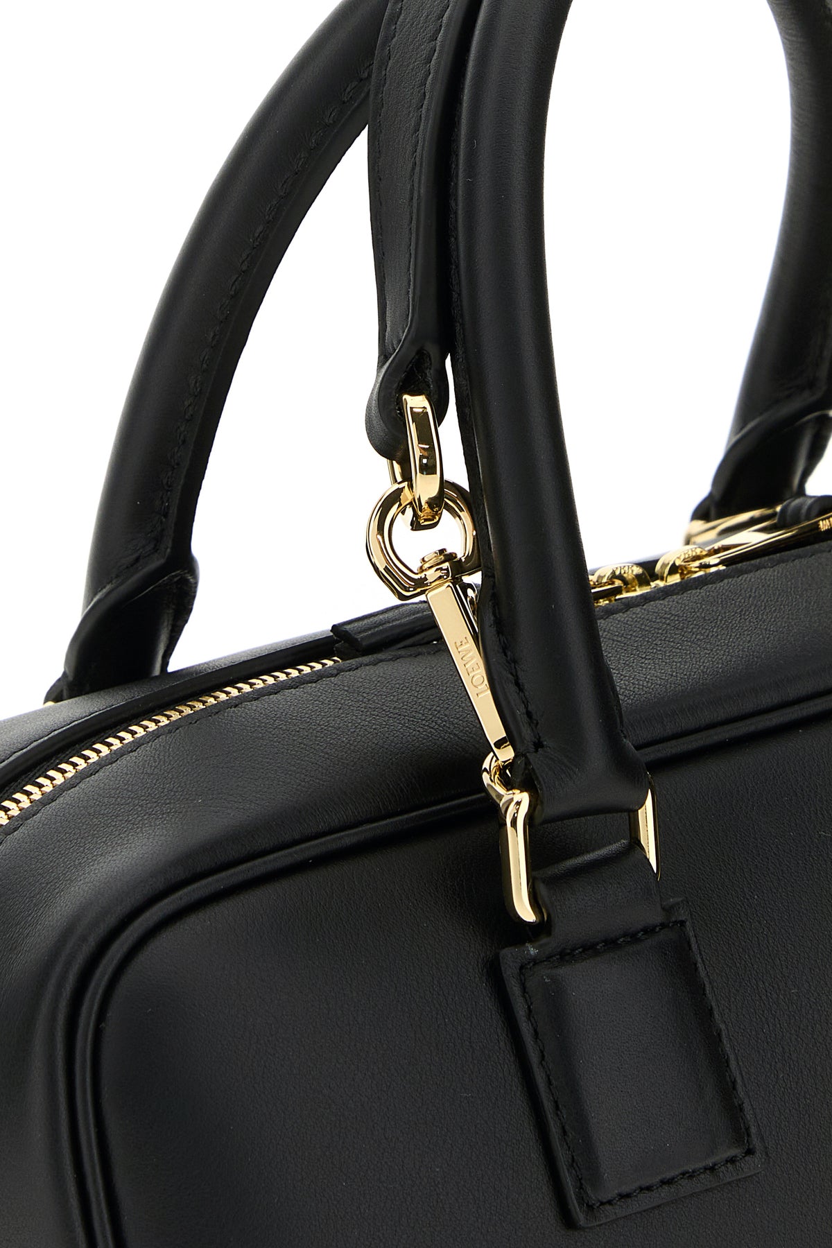 Handbag realized in pebble calf nappa leather characterized by embossed Anagram motif at the front.