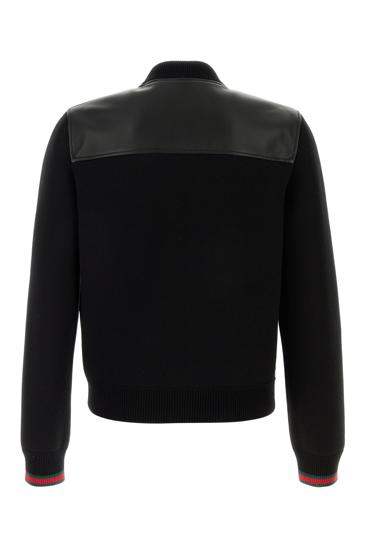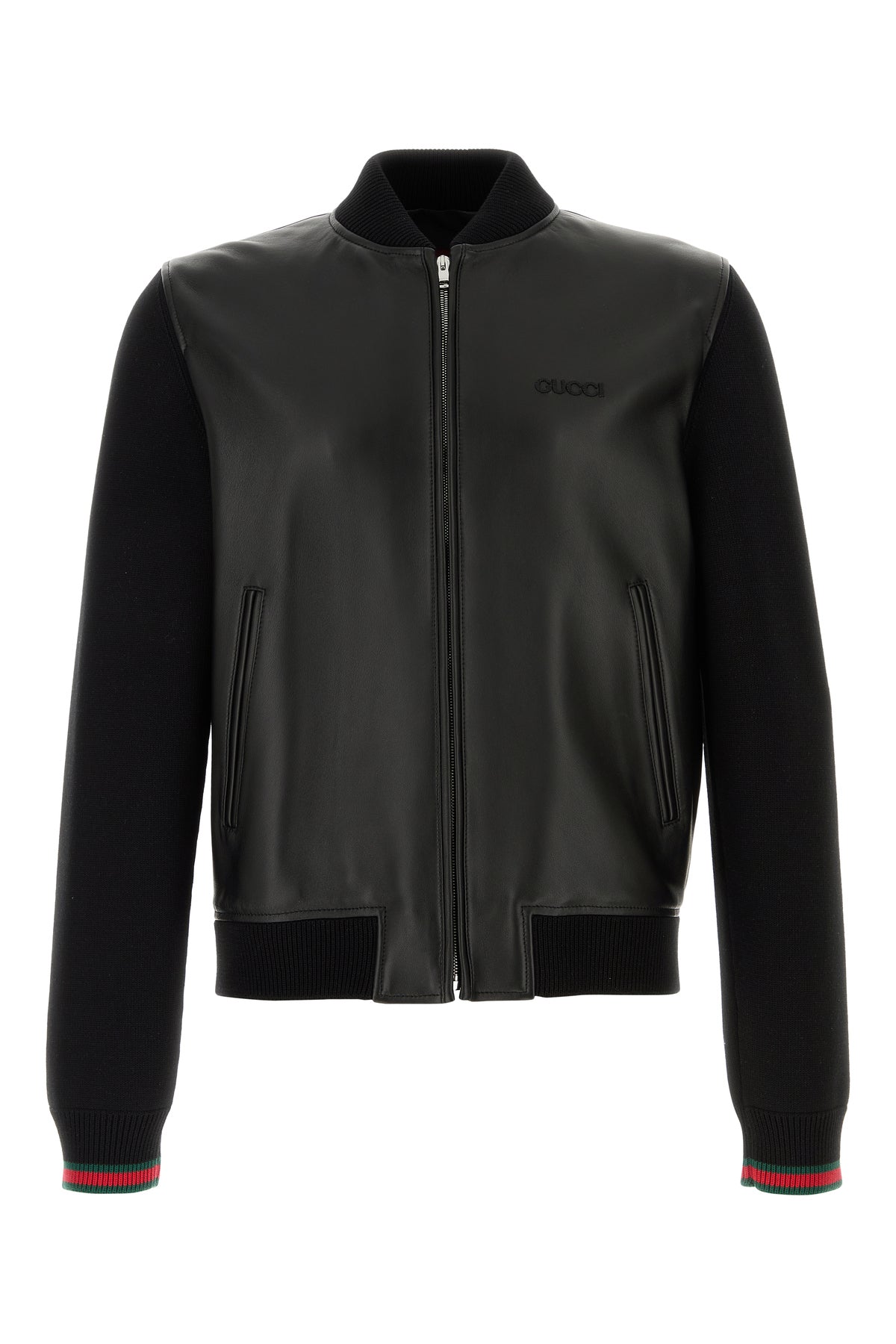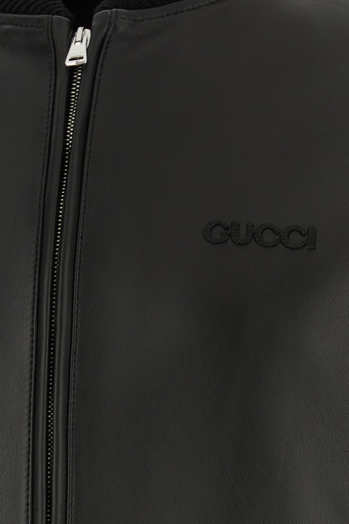 Bomber jacket realized in lamb nappa leather and cotton blend knit characterized by tonal Gucci embroidery on the chest.