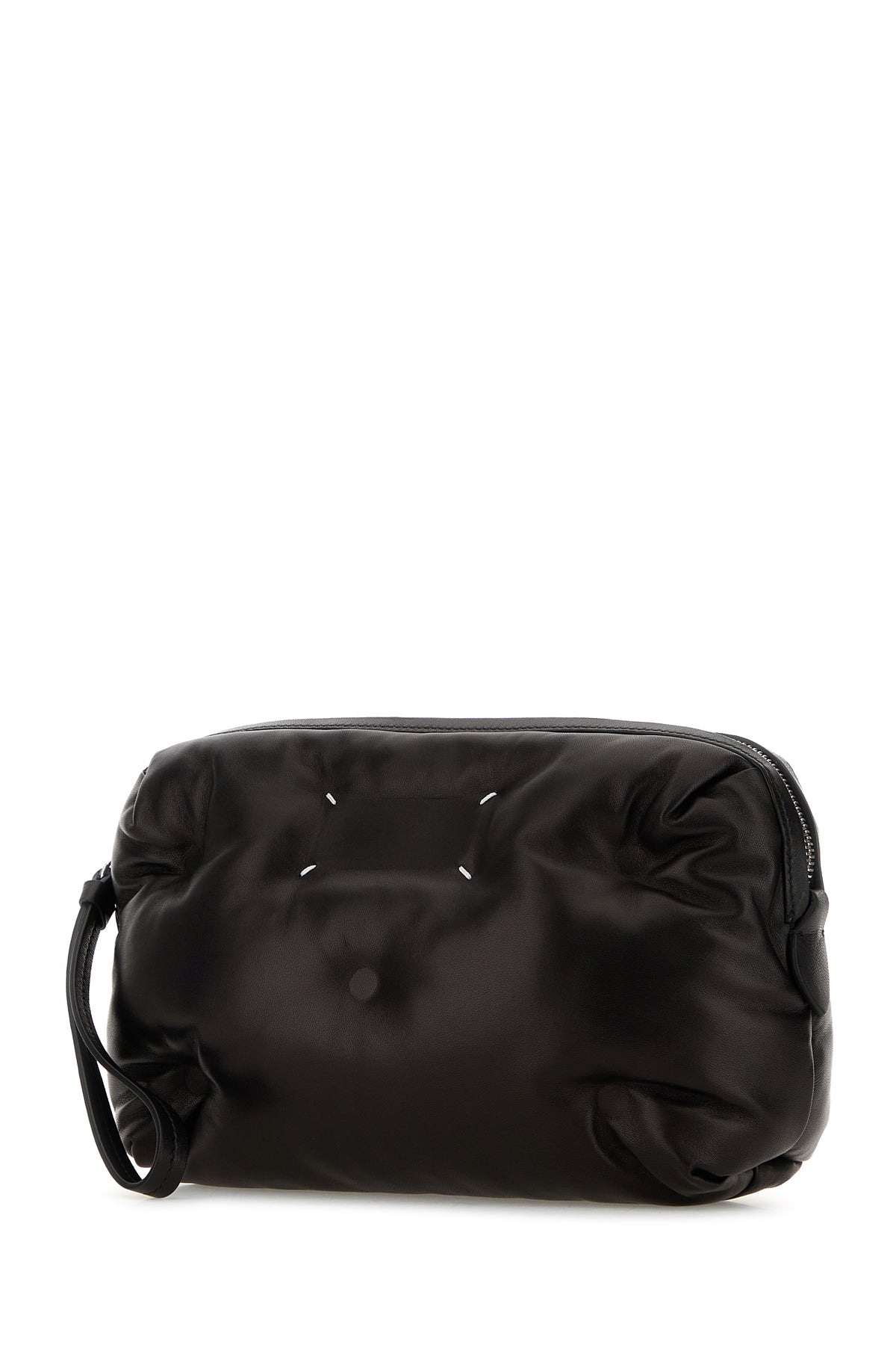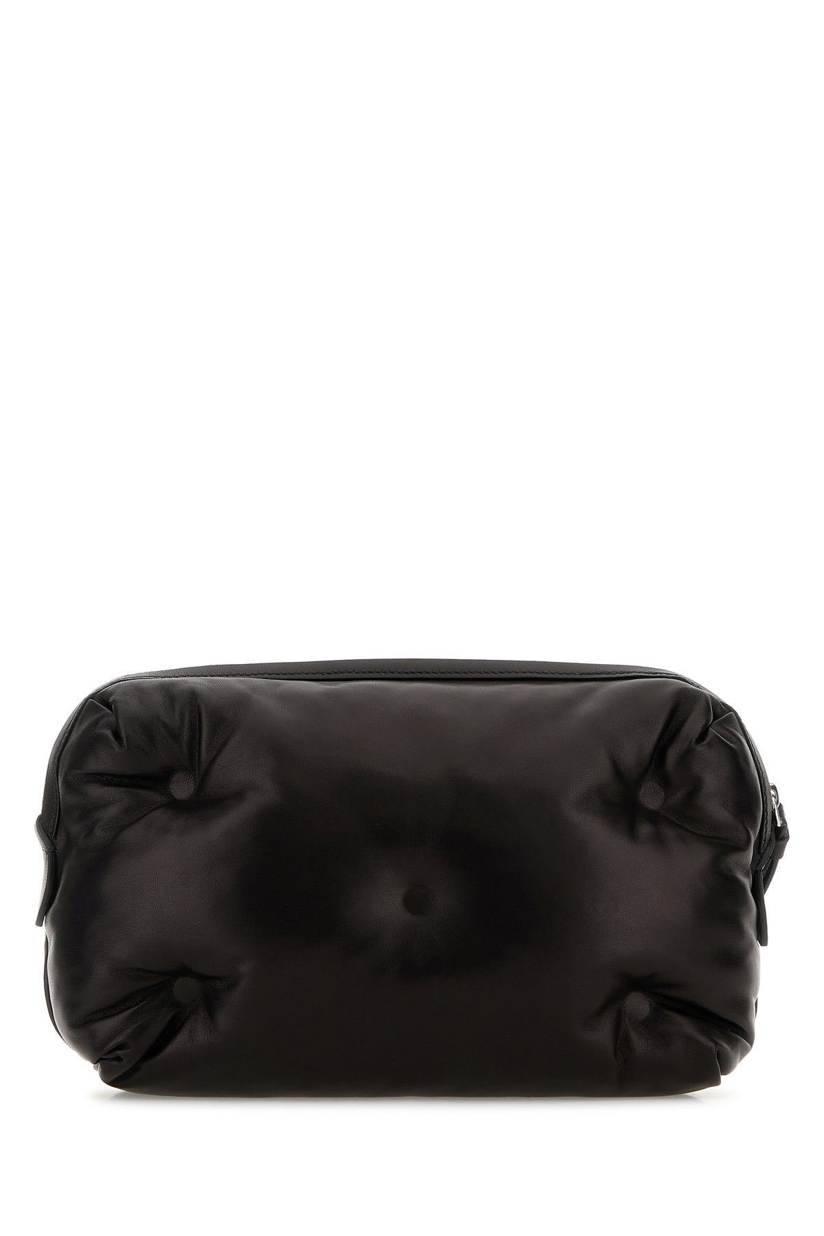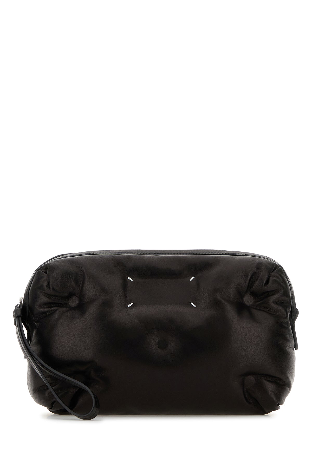 Clutch realized in padded and quilted nappa leather enriched by contrasting iconic stitchings at the front.