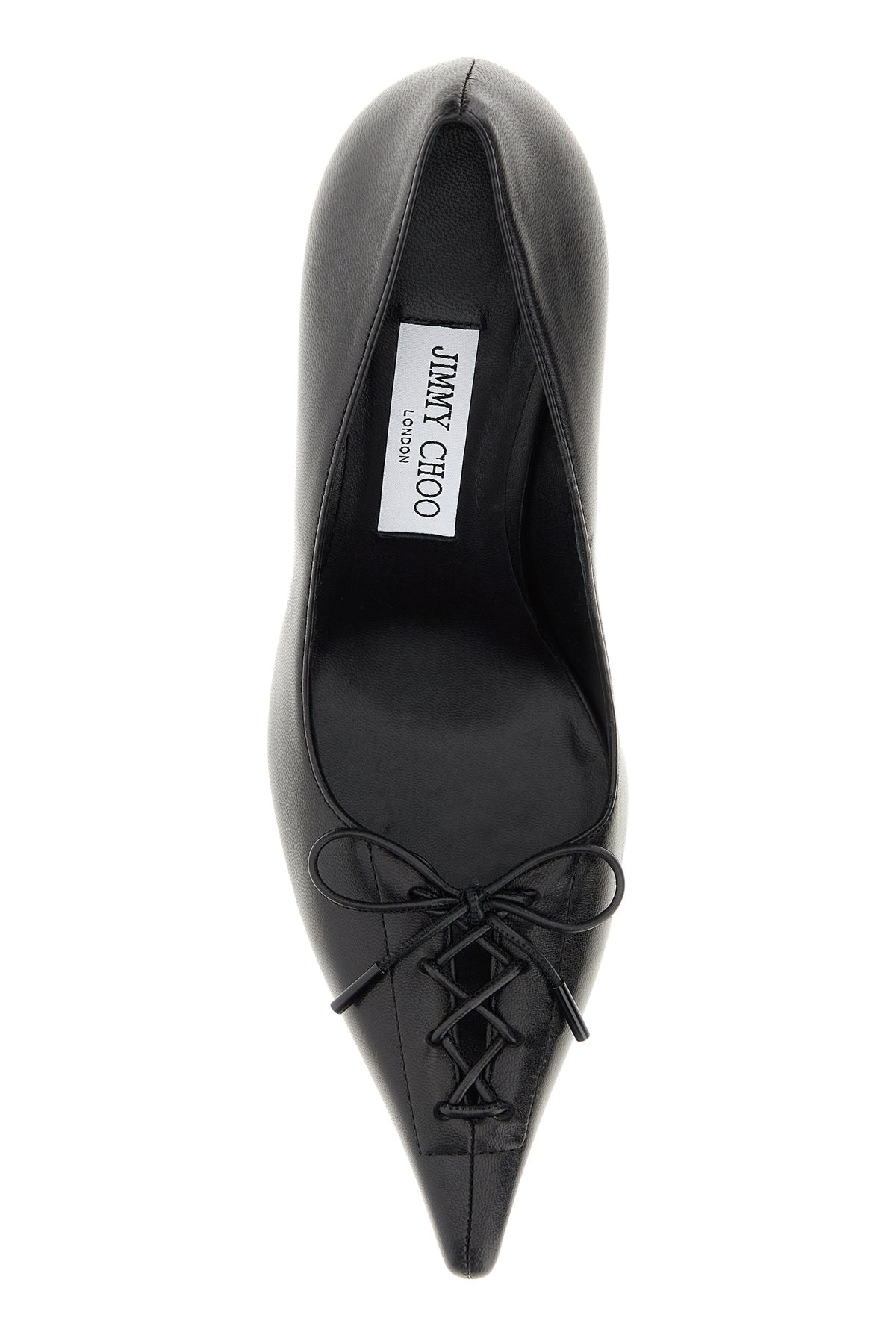 Pumps realized in nappa leather enriched by decorative laces on then toe.