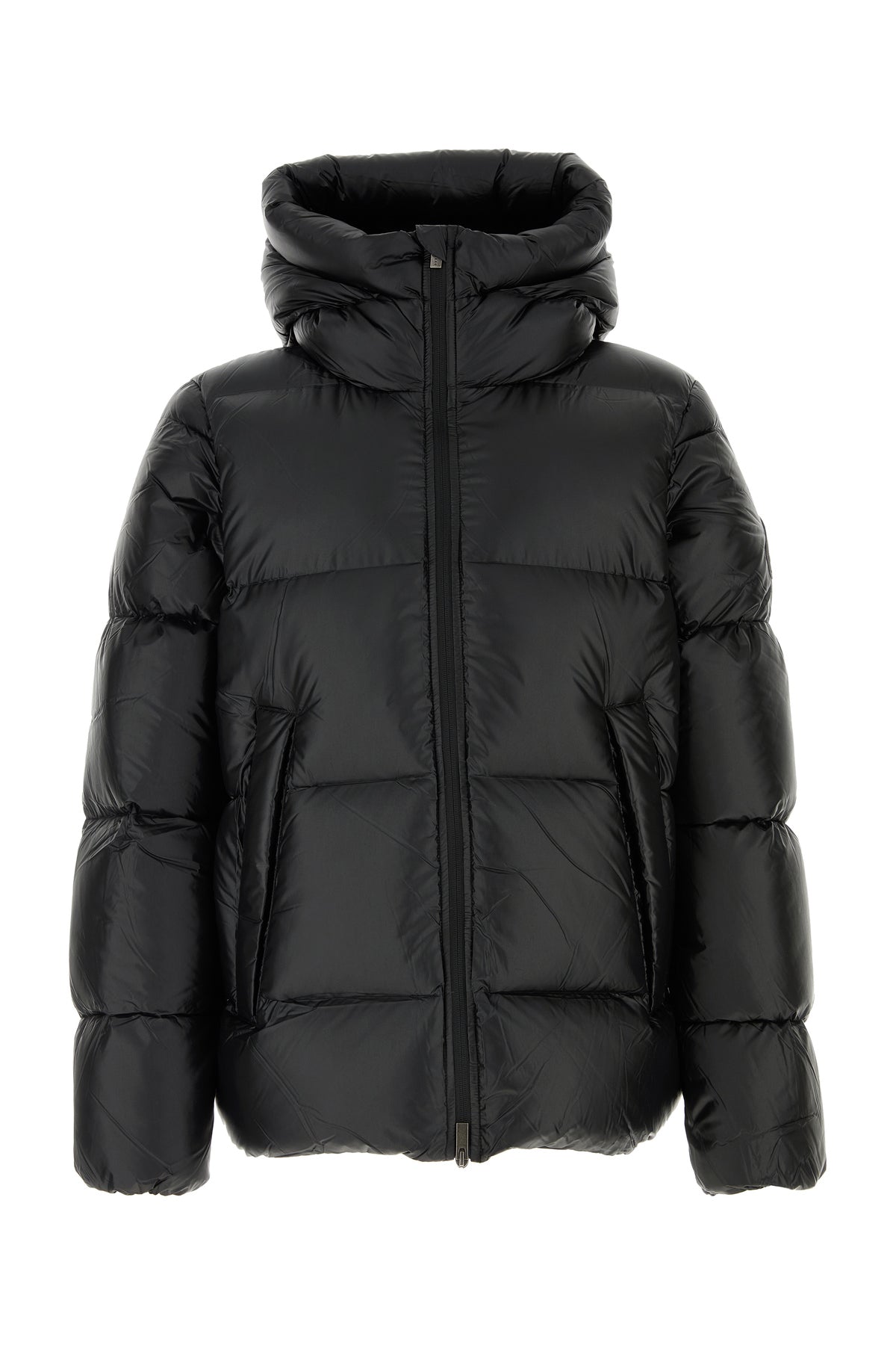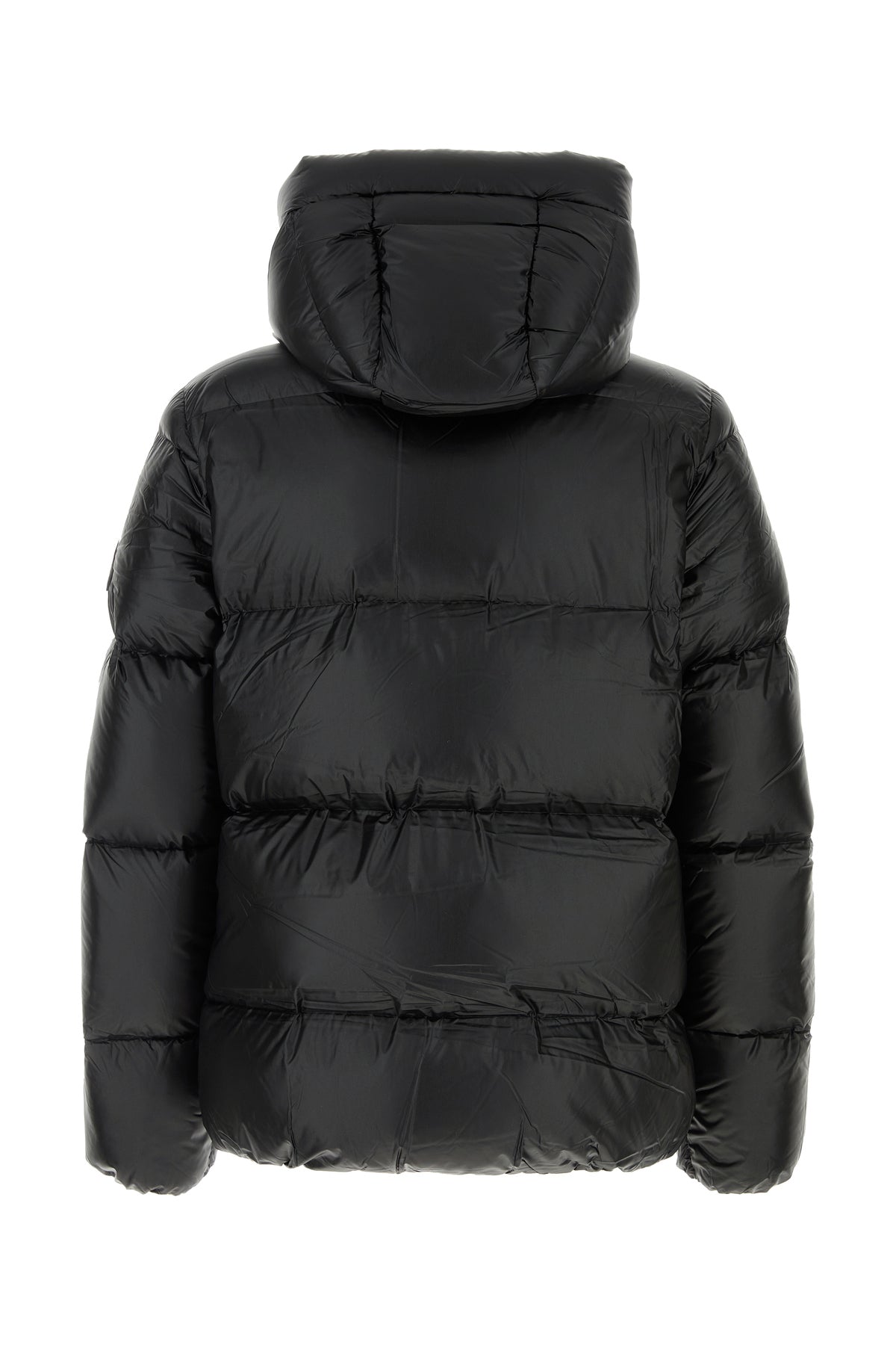 Down jacket realized in quilted nylon enriched by tonal logoed patch on the sleeve.