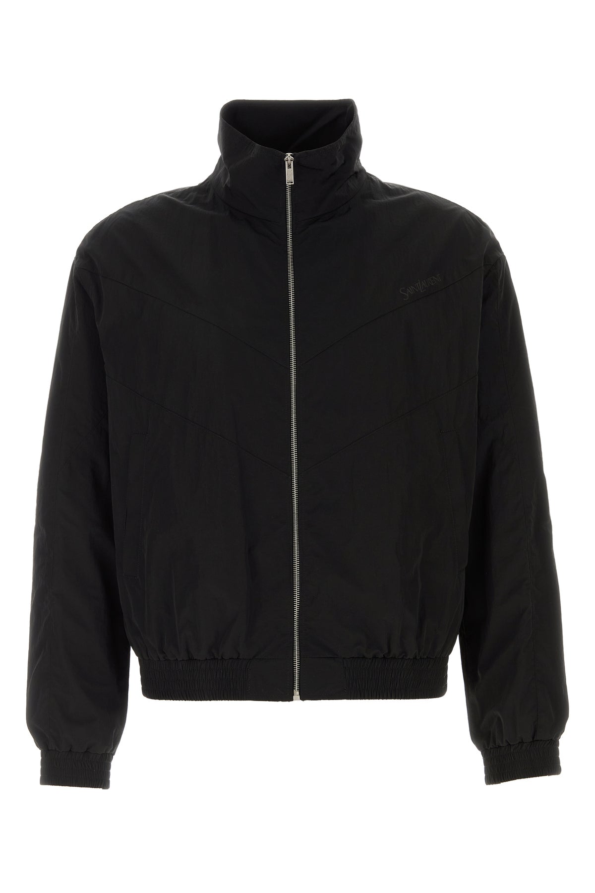 Bomber jacket realized in nylon characterized by tonal embroidered logo on the chest.