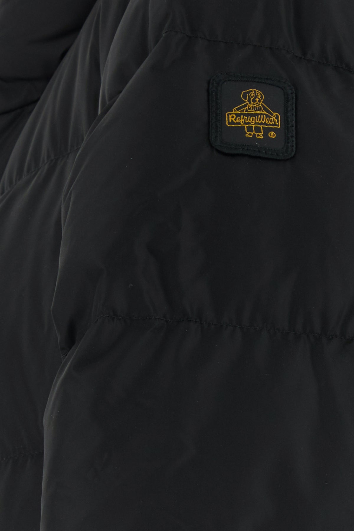 Down jacket realized in quilted nylon enriched by tonal logoed label on the sleeve.