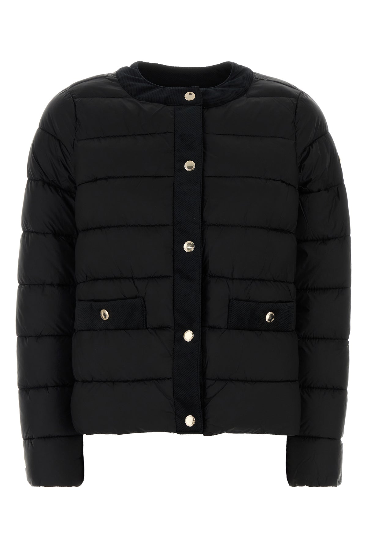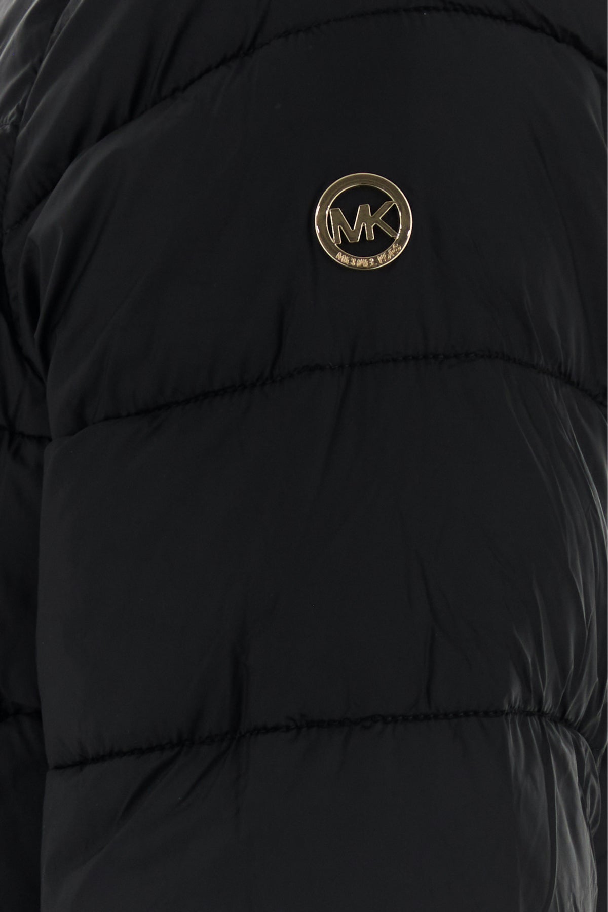 Padded jacket realized in quilted nylon enriched by logoed metal detail on the sleeve.