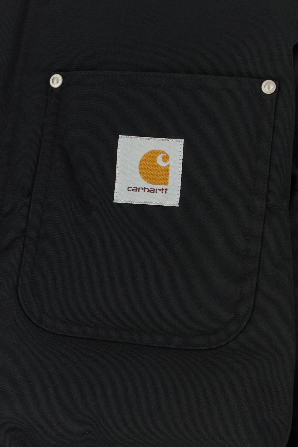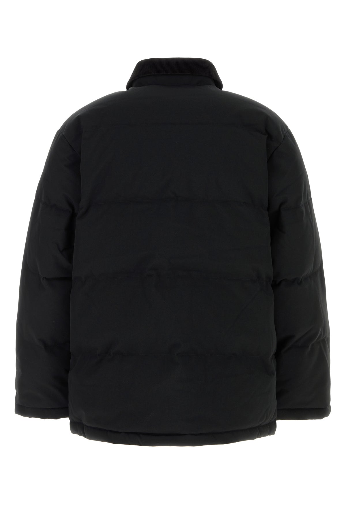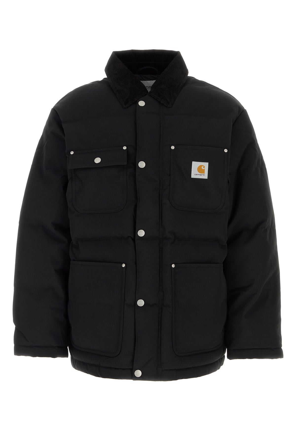 Padded jacket realized in nylon enriched by contrasting logoed label on the chest.
