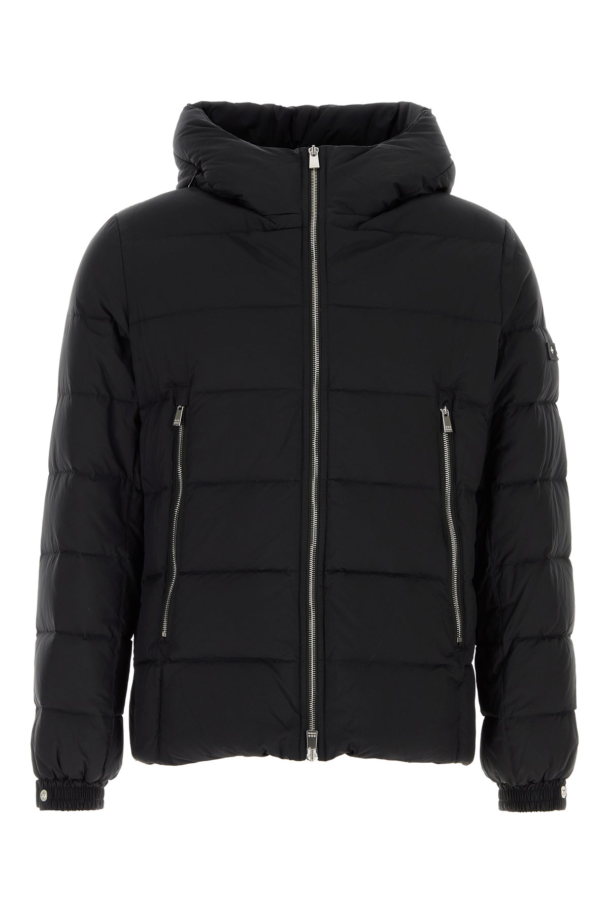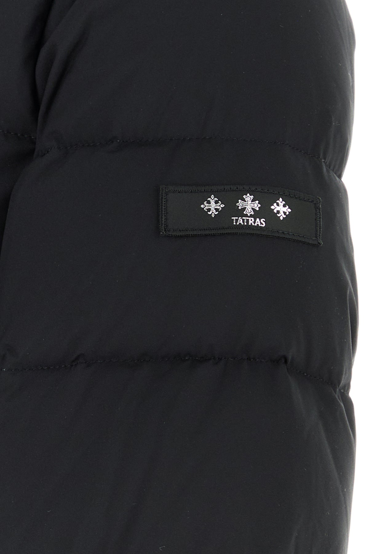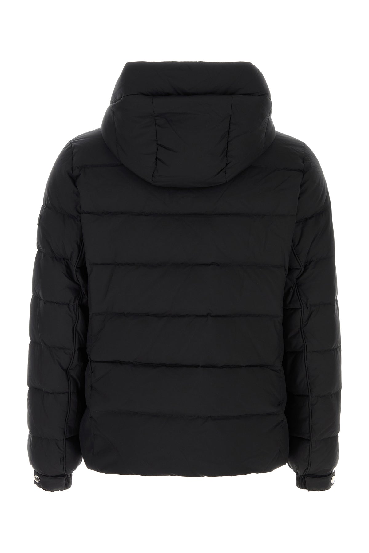 Down jacket realized in quilted nylon enriched by tonal logoed label on the sleeve.