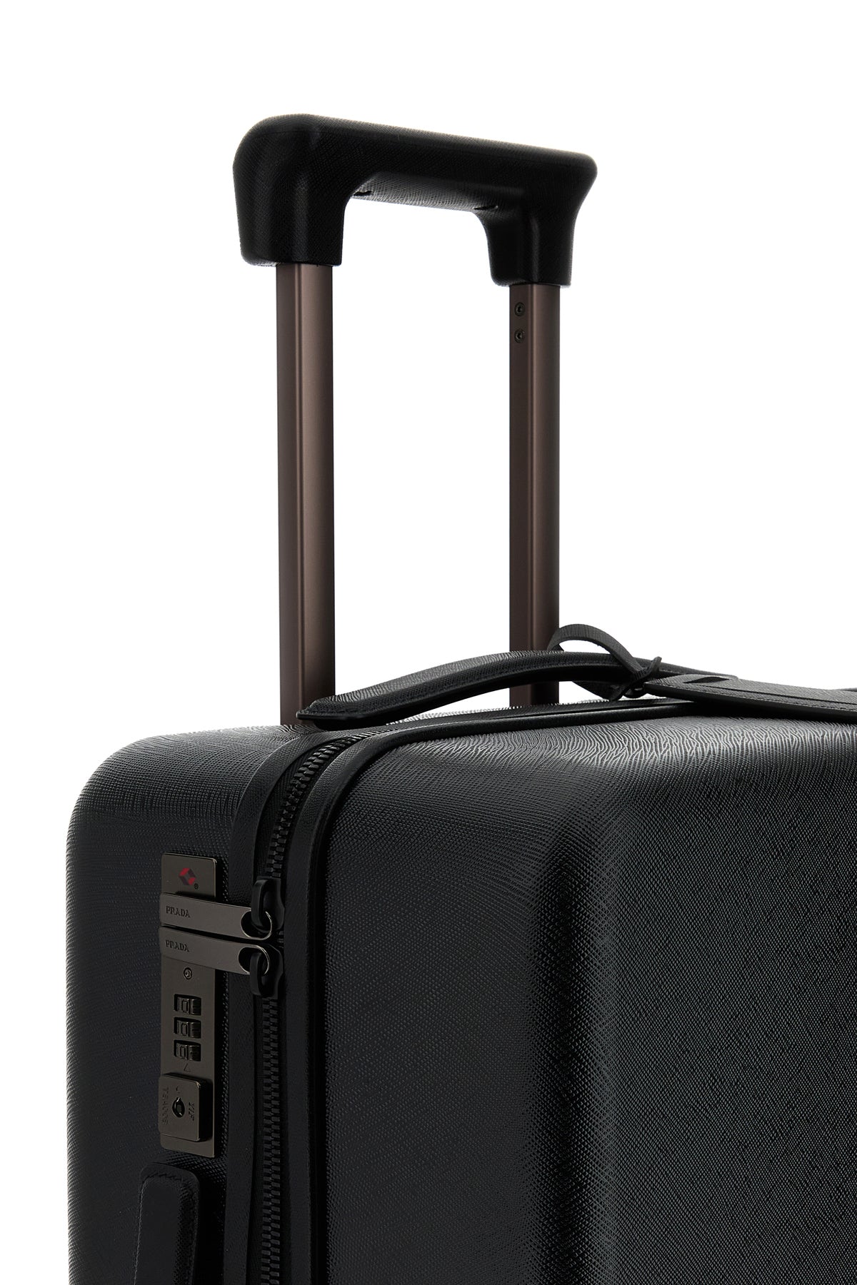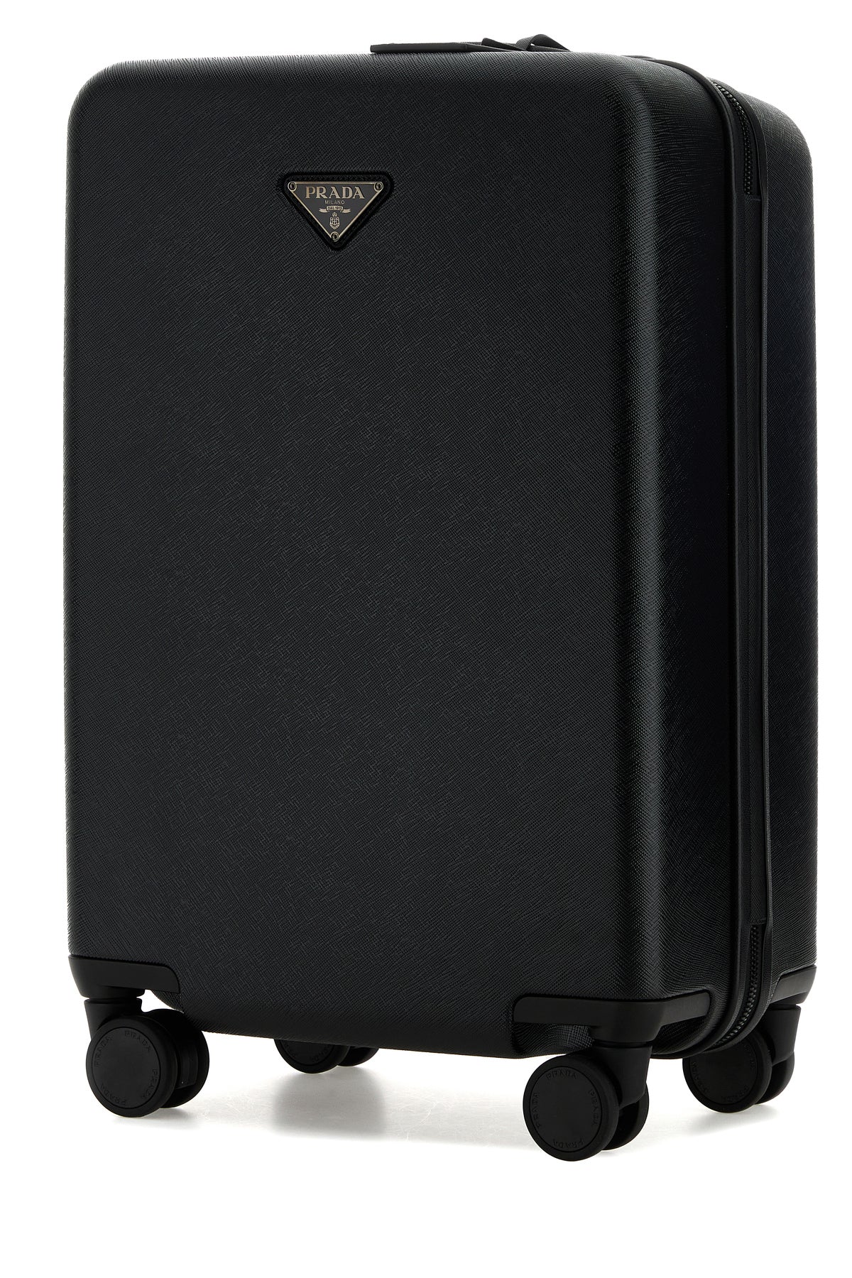 Trolley realized in polycarbonate enriched by iconic logoed metal triangle at the front.