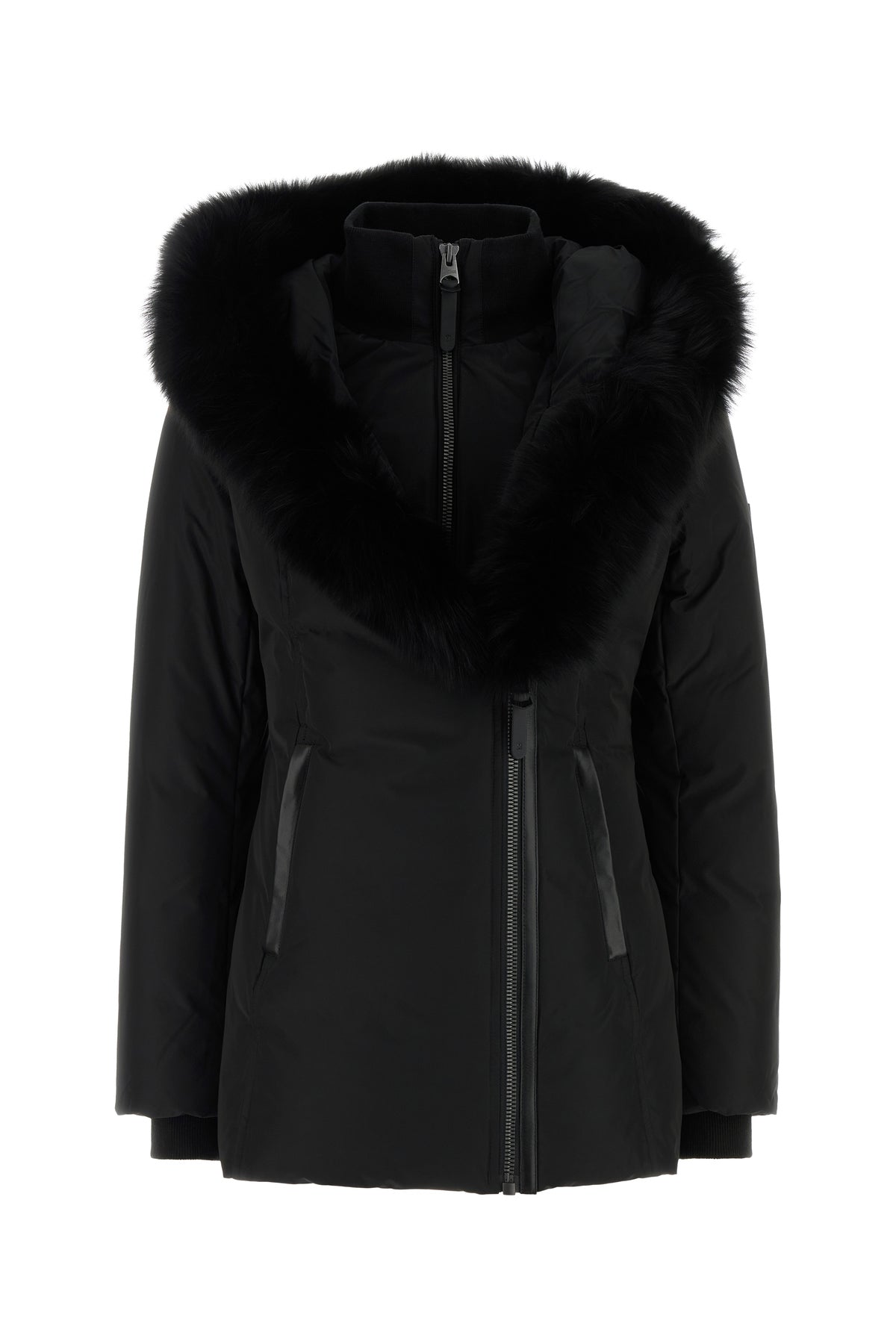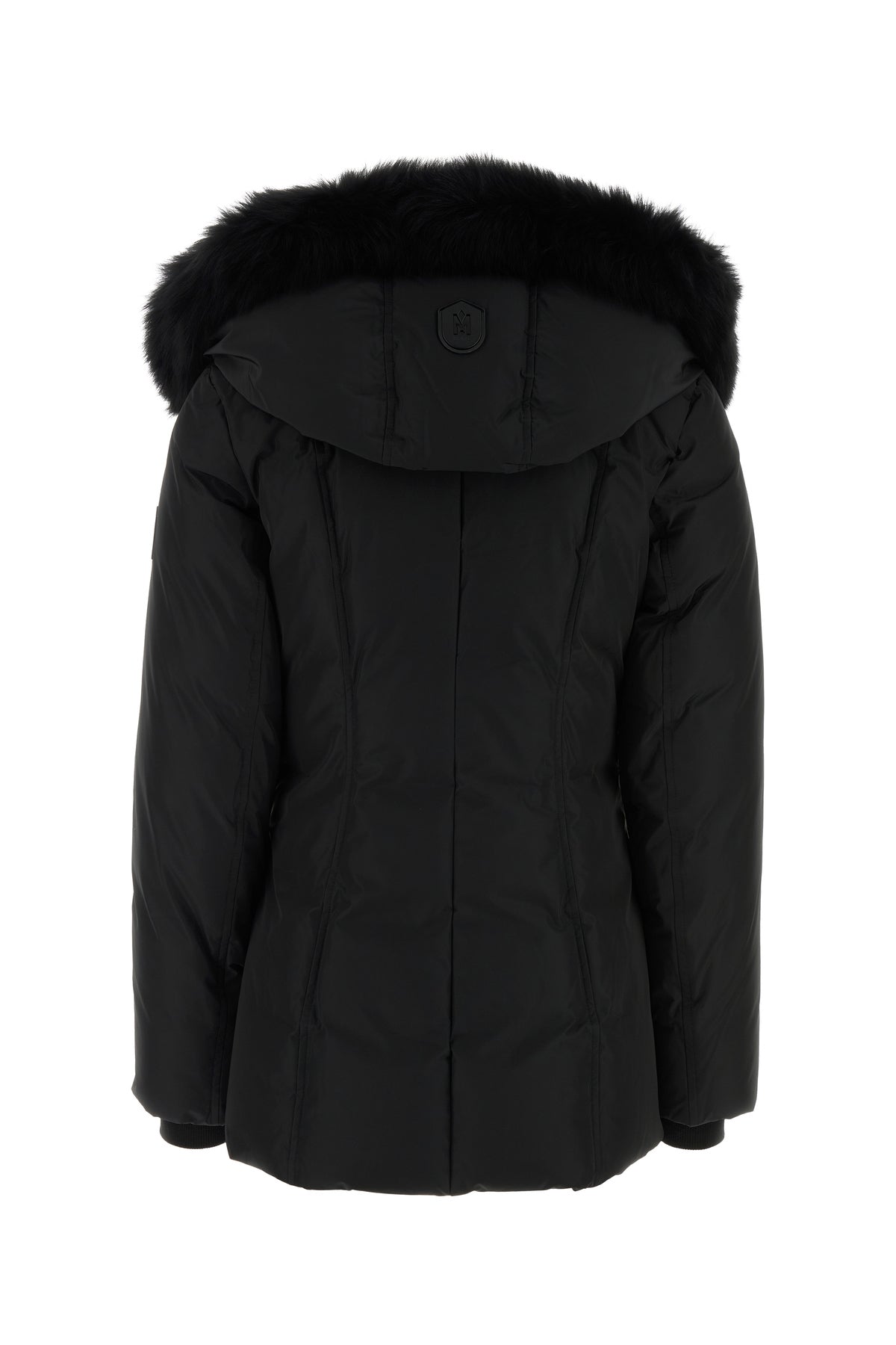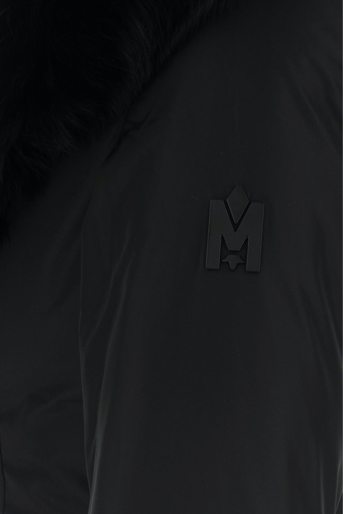Down jacket realized in polyester enriched by metal lettering logo on the sleeve.
