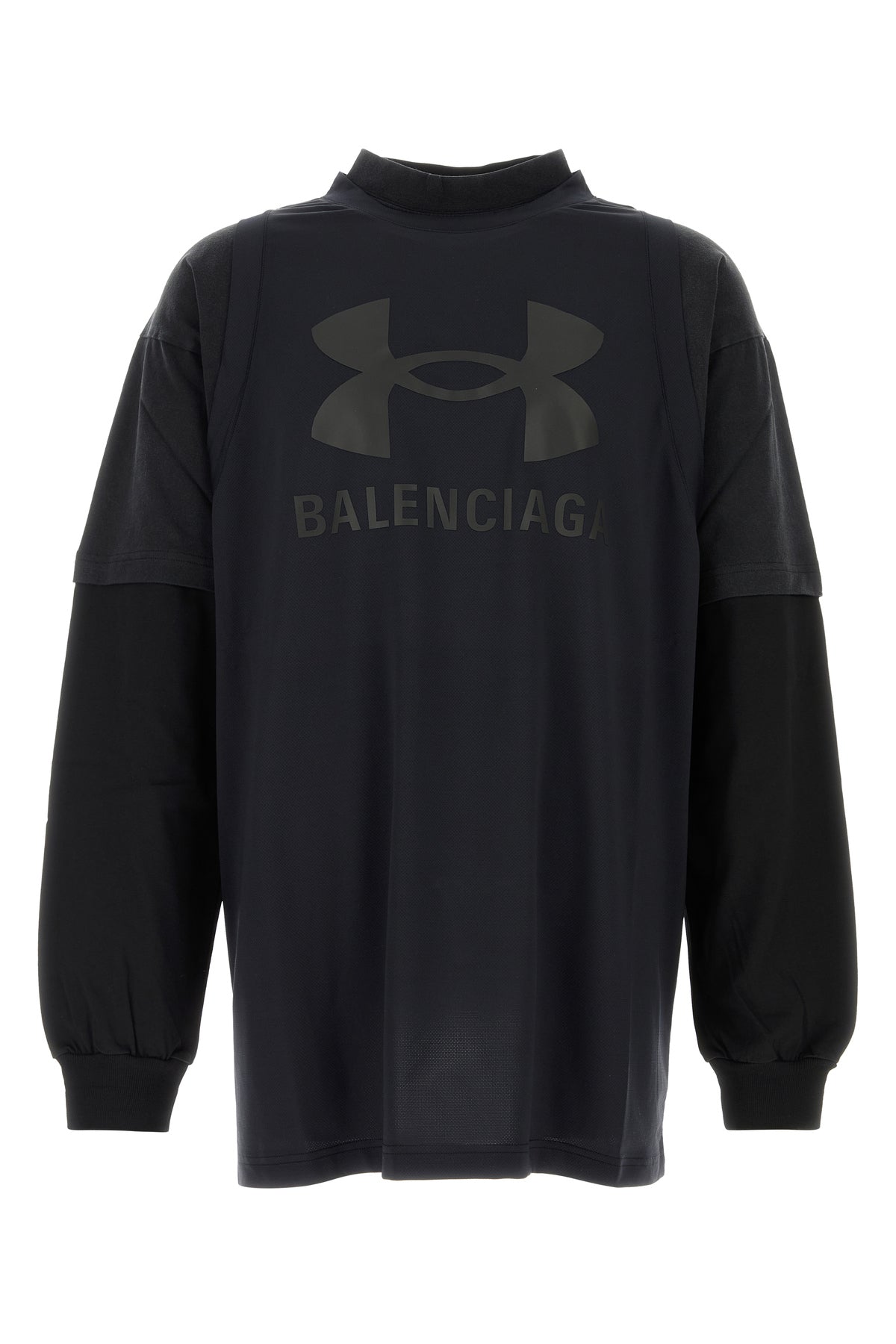Black polyester and cotton Balenciaga X Under Armour layered oversize t-shirt