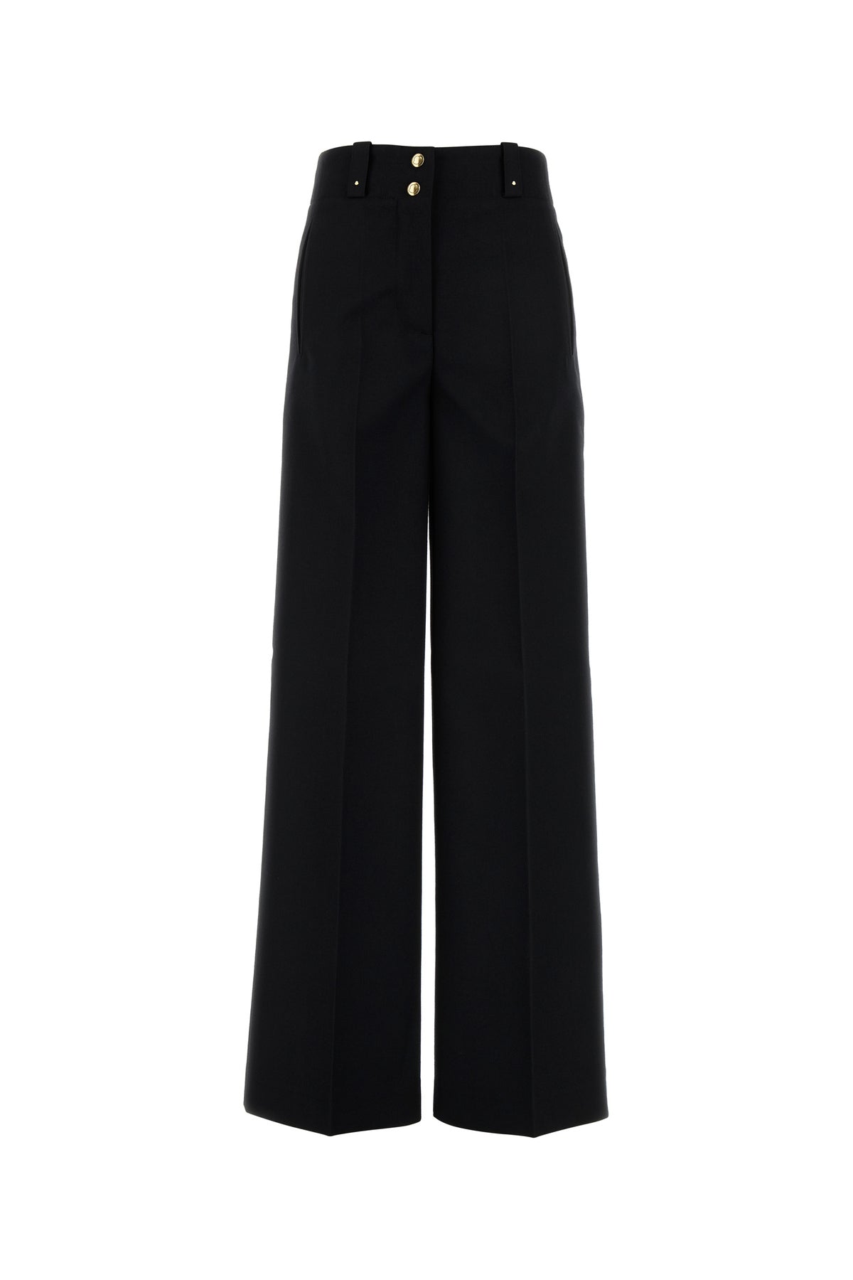 Palazzo pant realized in polyester blend enriched by tonal logoed patch at the back.