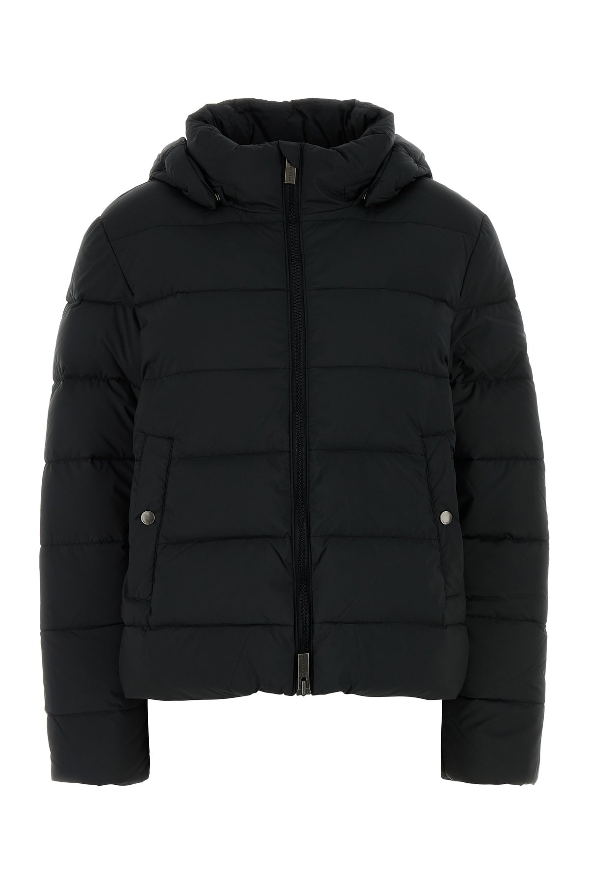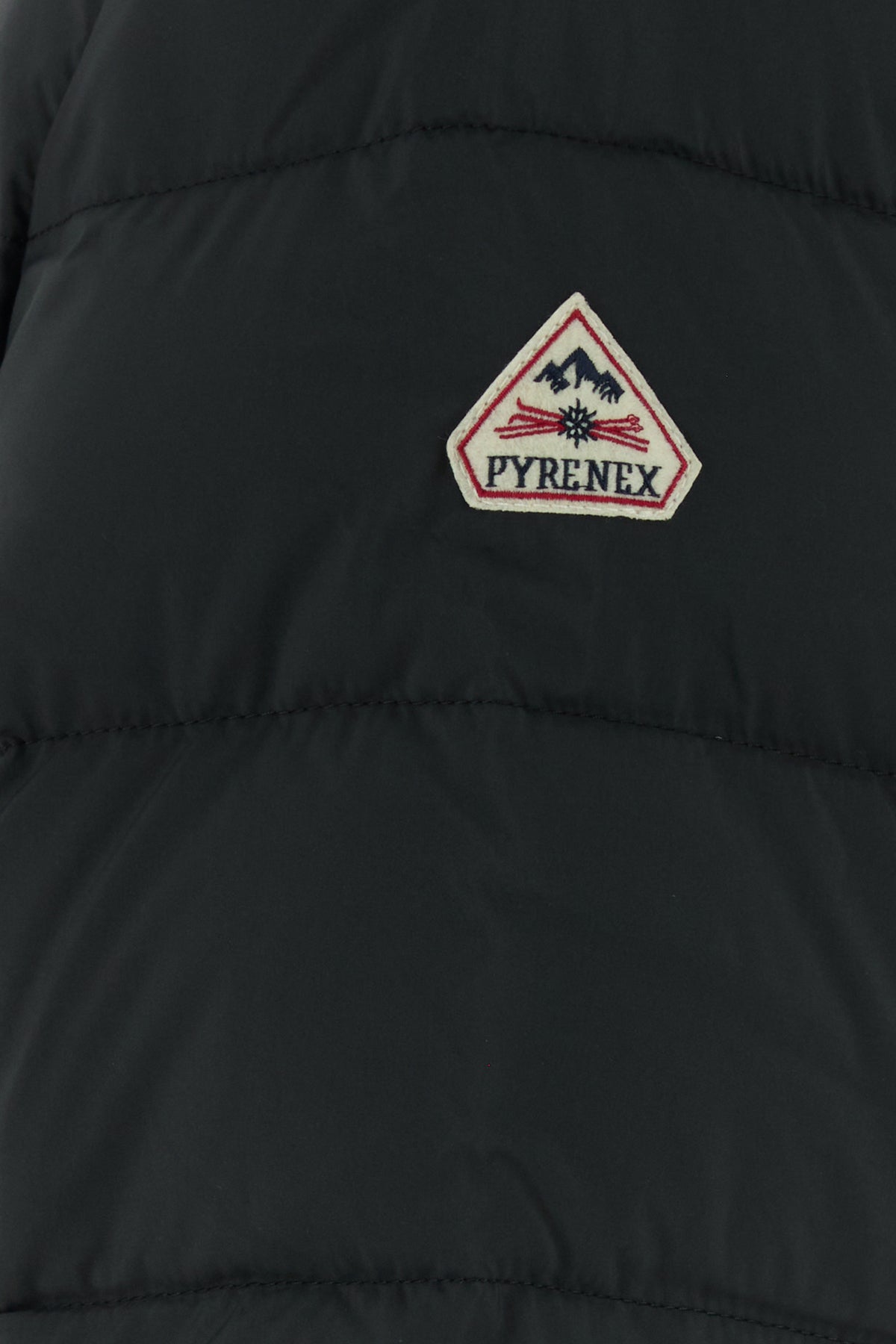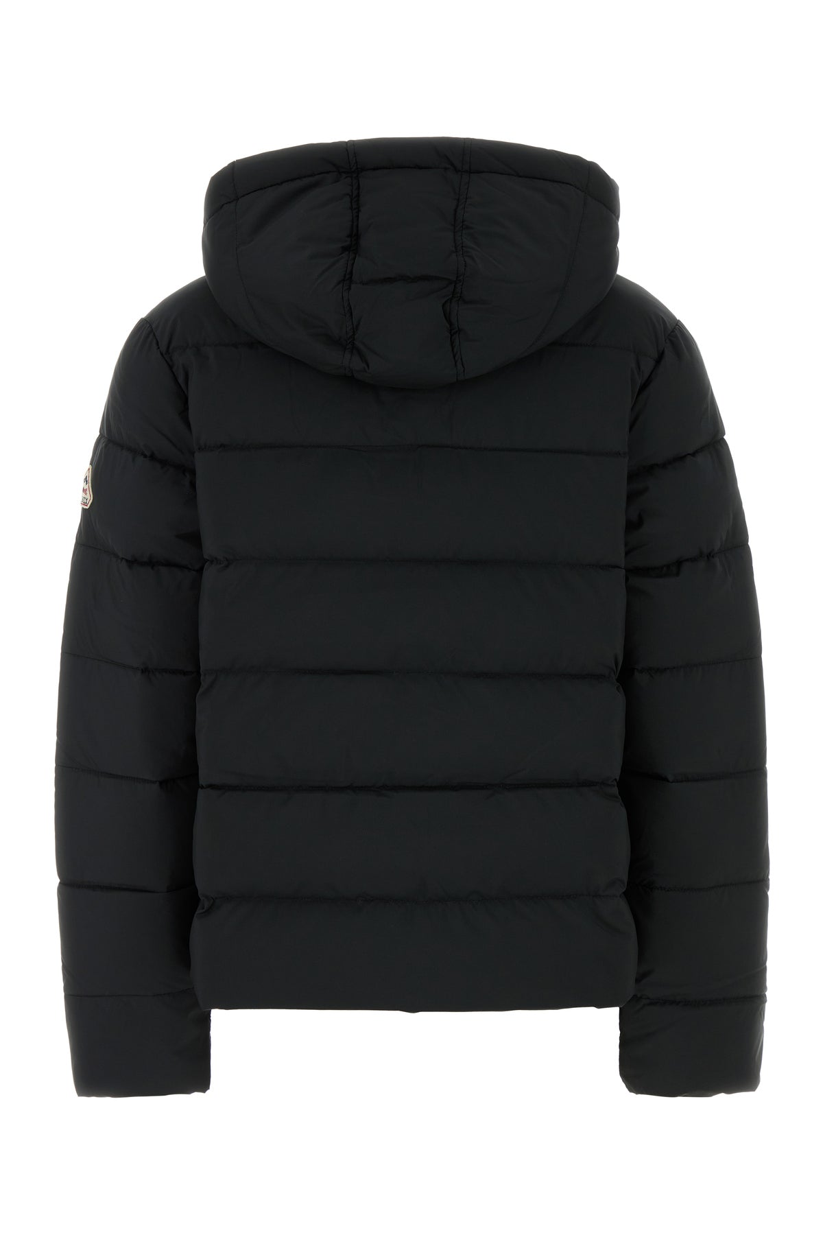 Down jacket realized in polyester blend enriched by contrasting logoed patch on the sleeve.