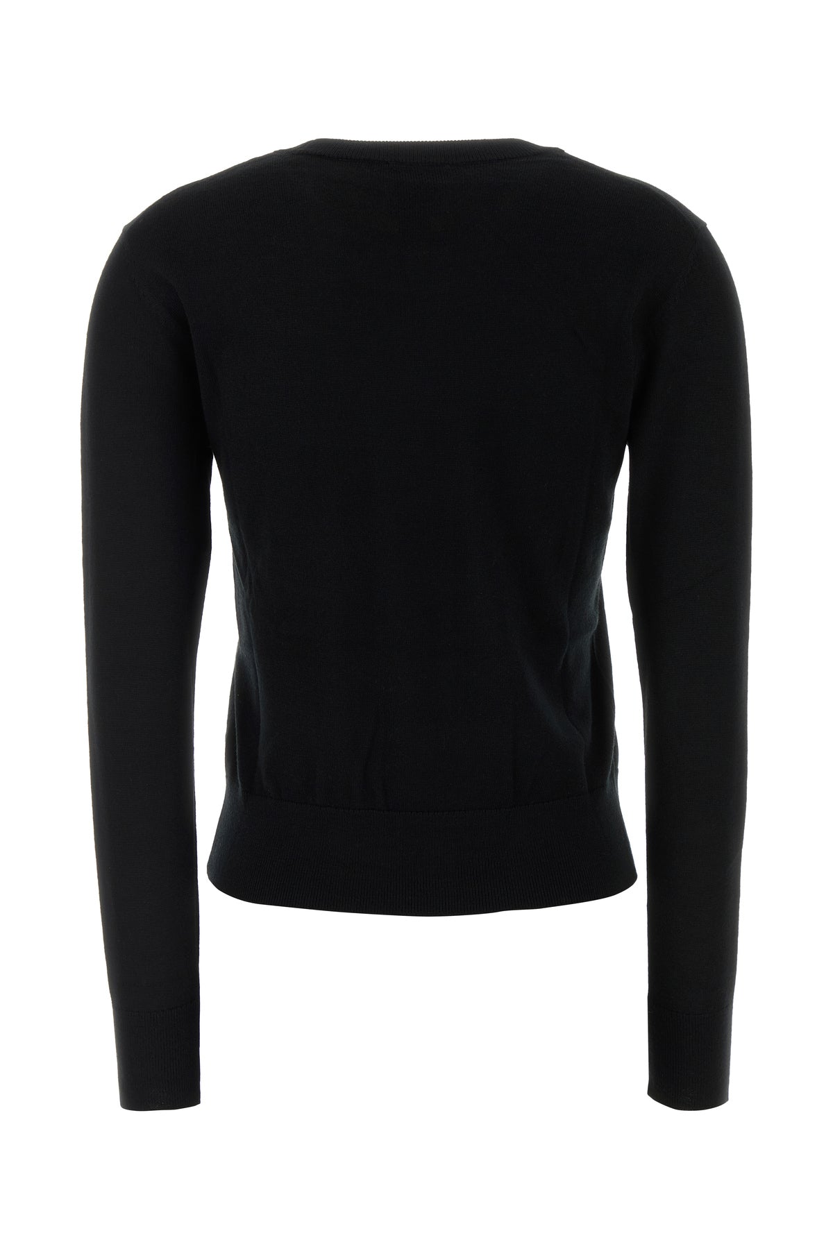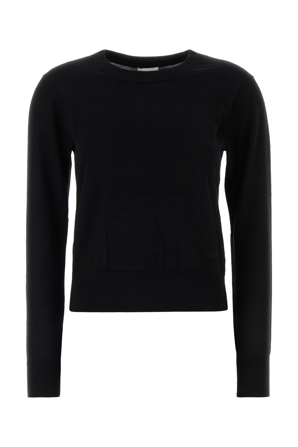 Sweater realized in polyester blend characterized by embroidered logo on the hemline.