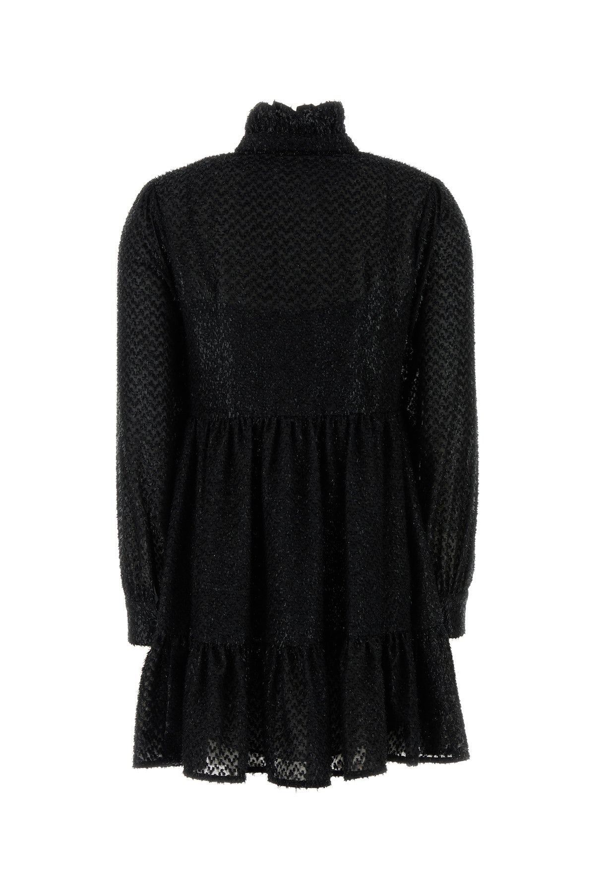 Dress realized in polyester with lurex threads enriched by fringes on the entire surface.