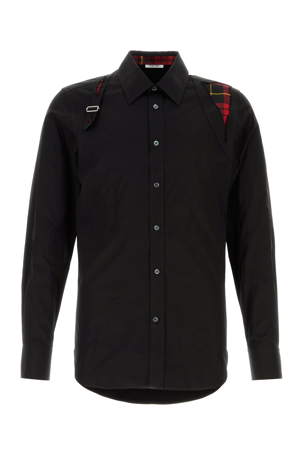 Shirt realized in pure cotton poplin with contrasting insert at the two enriched by adjustable strap at the front.