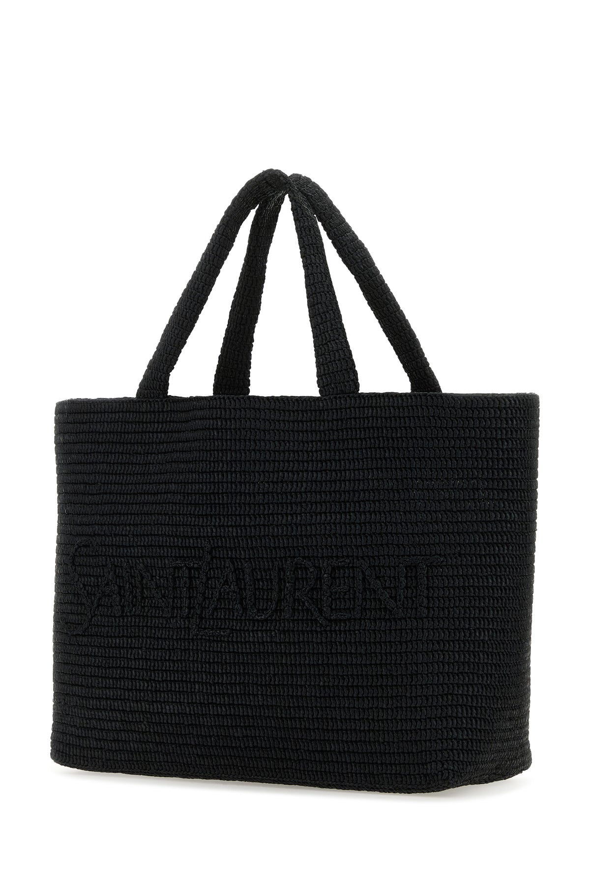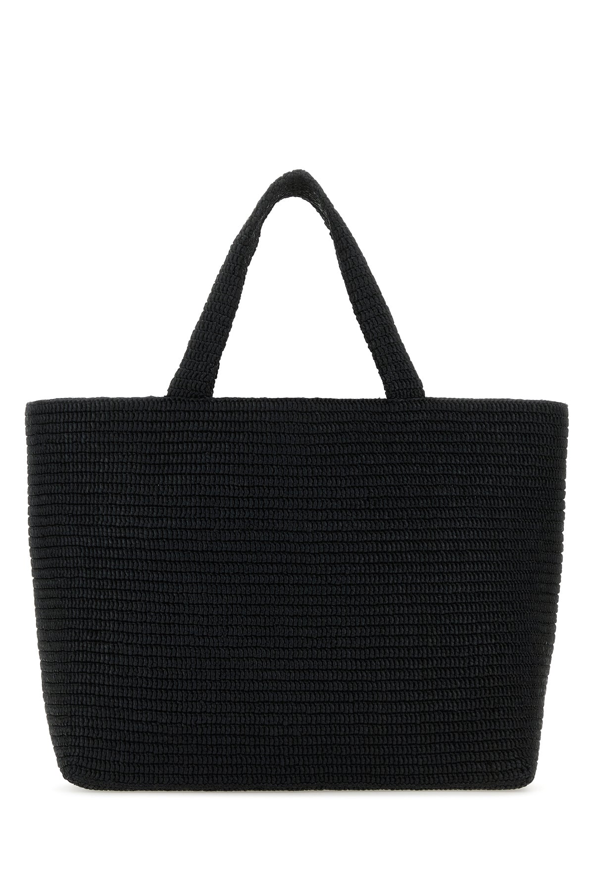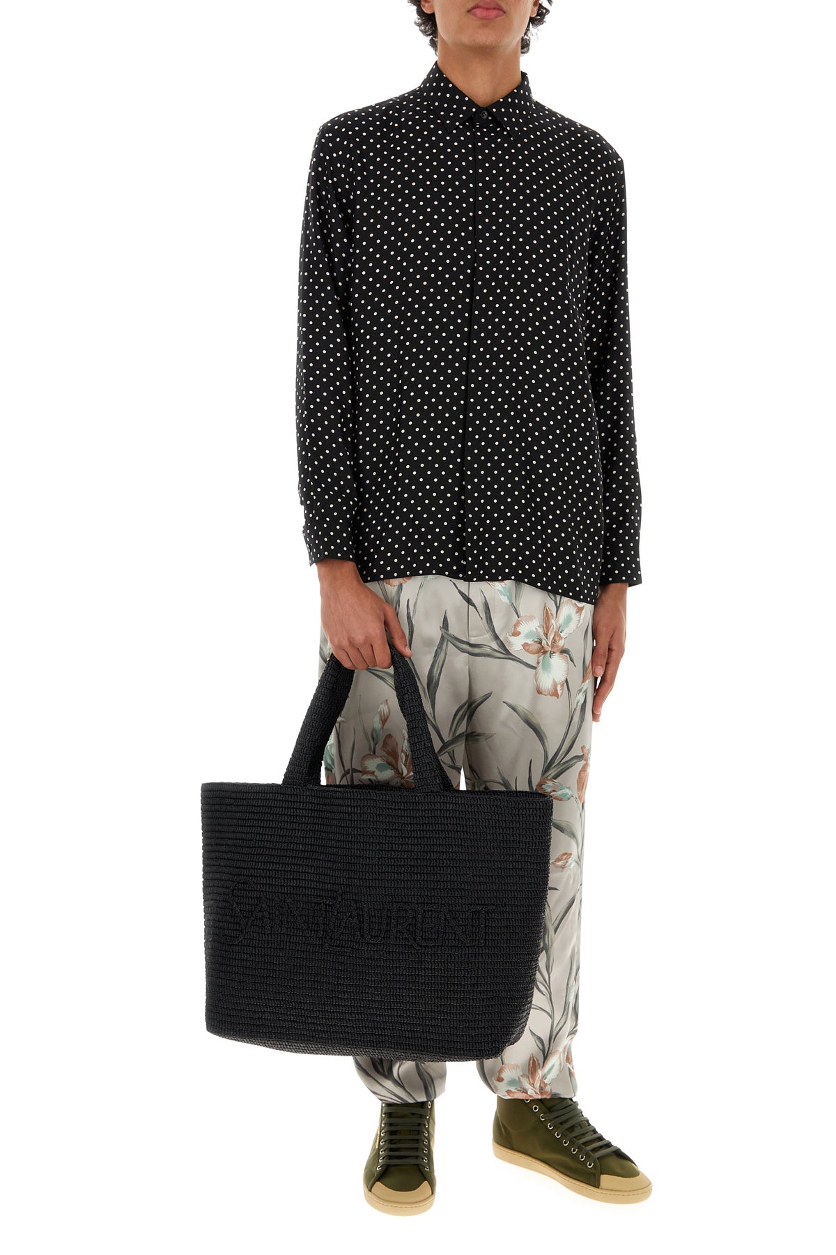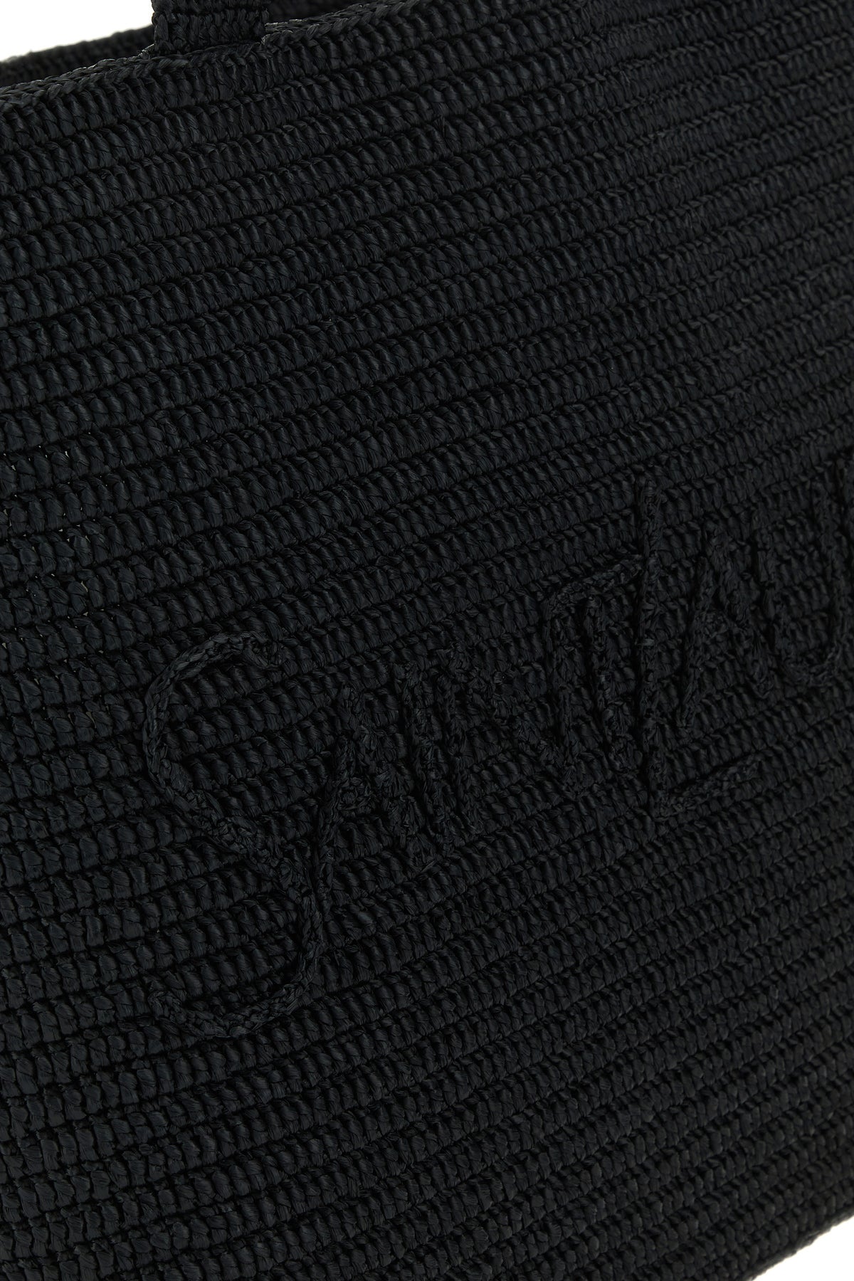 Shopping bag realized in woven raffia characterized by tonal logoed embroidery at the front.