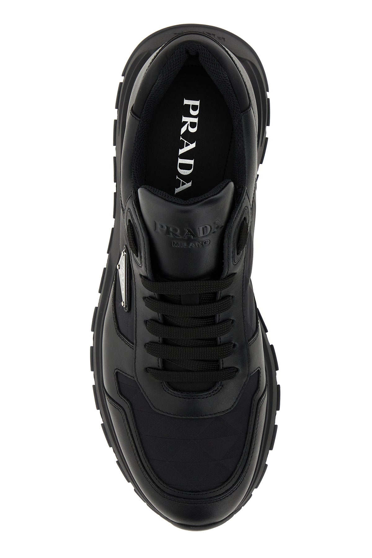 Sneakers realized in Re-Nylon and smooth leather characterized by embossed logo at the back enriched by iconic logoed triangle on the side.
