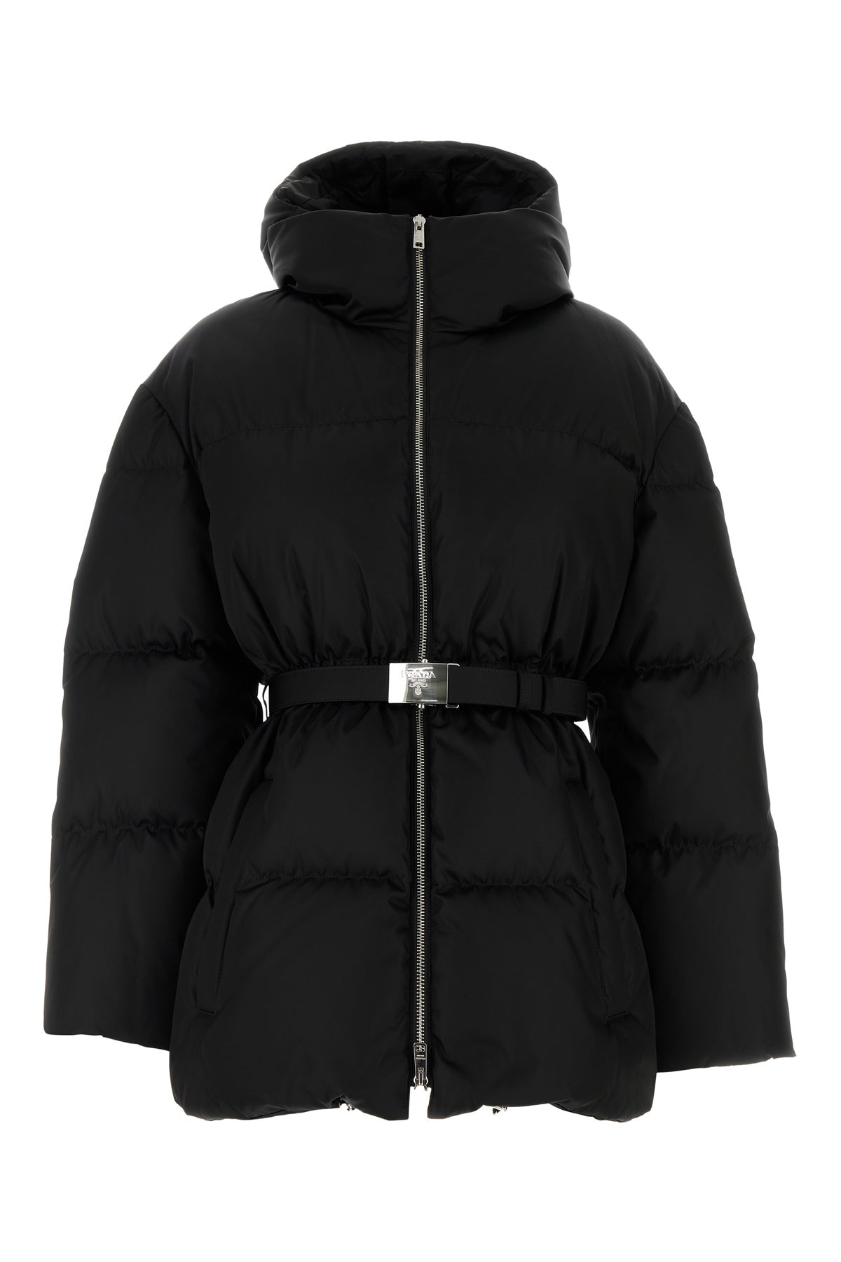 Down jacket realized in Re-Nylon enriched by detachable belt with metal logoed buckle.