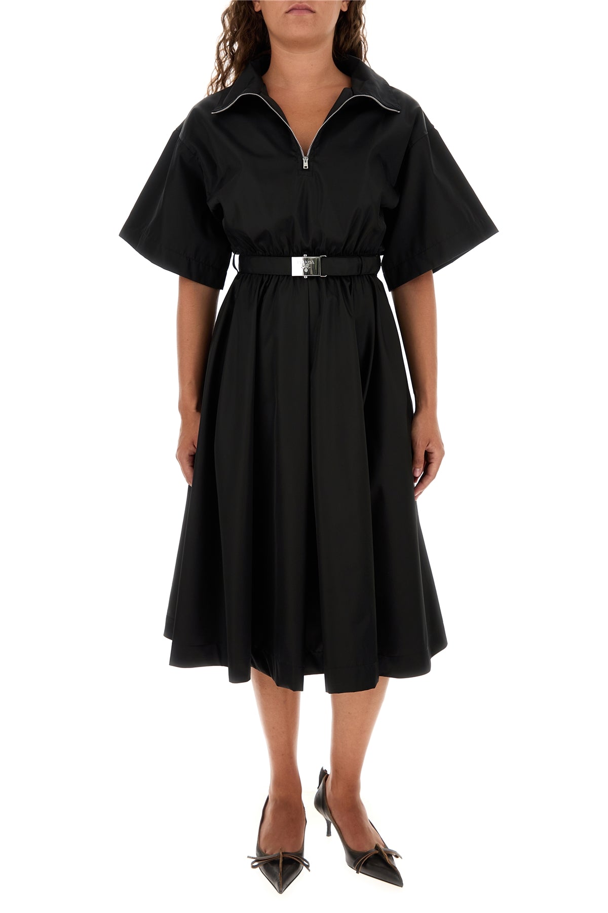 Dress realized in Re-Nylon characterized by tonal fabric belt at the waist.