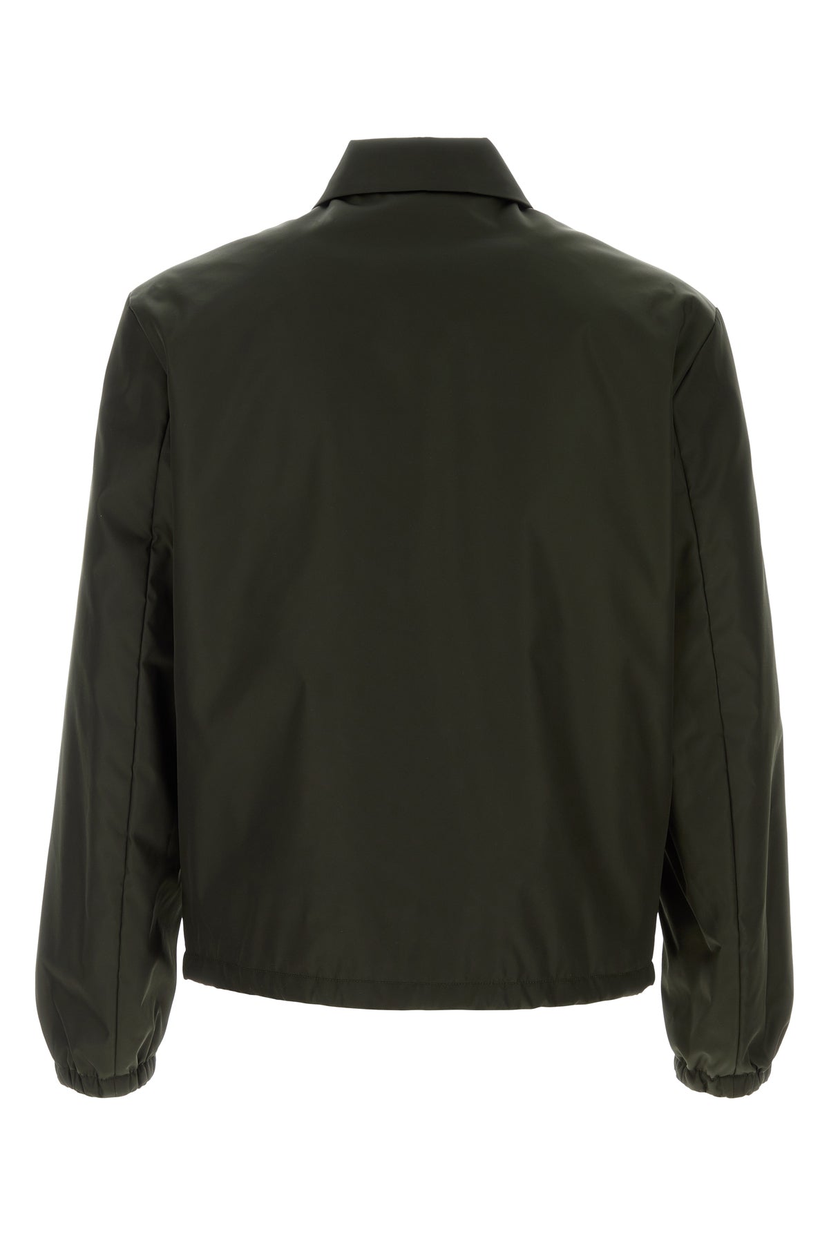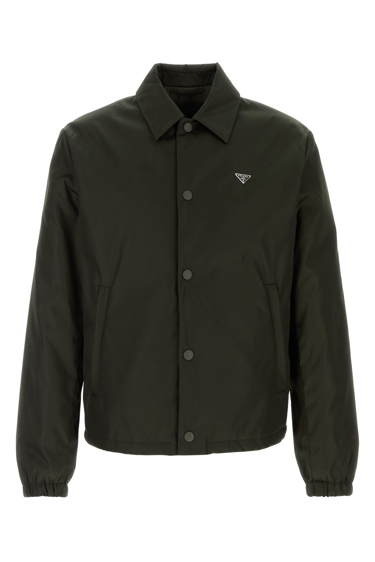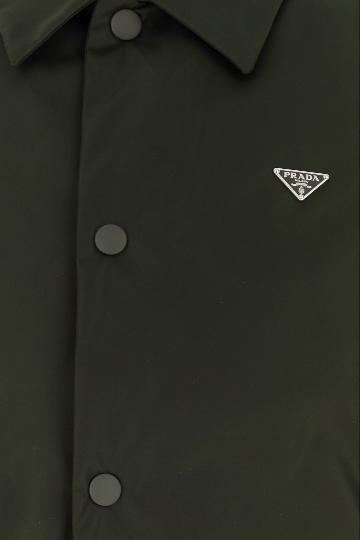 Padded jacket realized in coated Re-Nylon enriched by metal iconic logoed triangle on the chest.