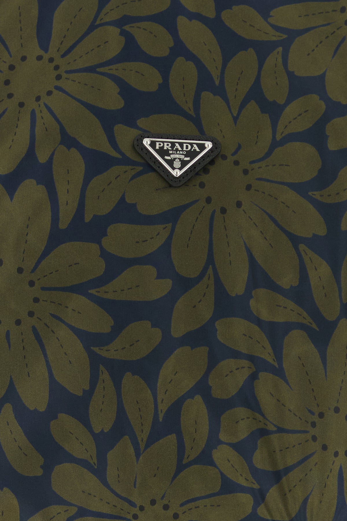 - Contrasting interior with floral motif print and metal iconic logoed triangle