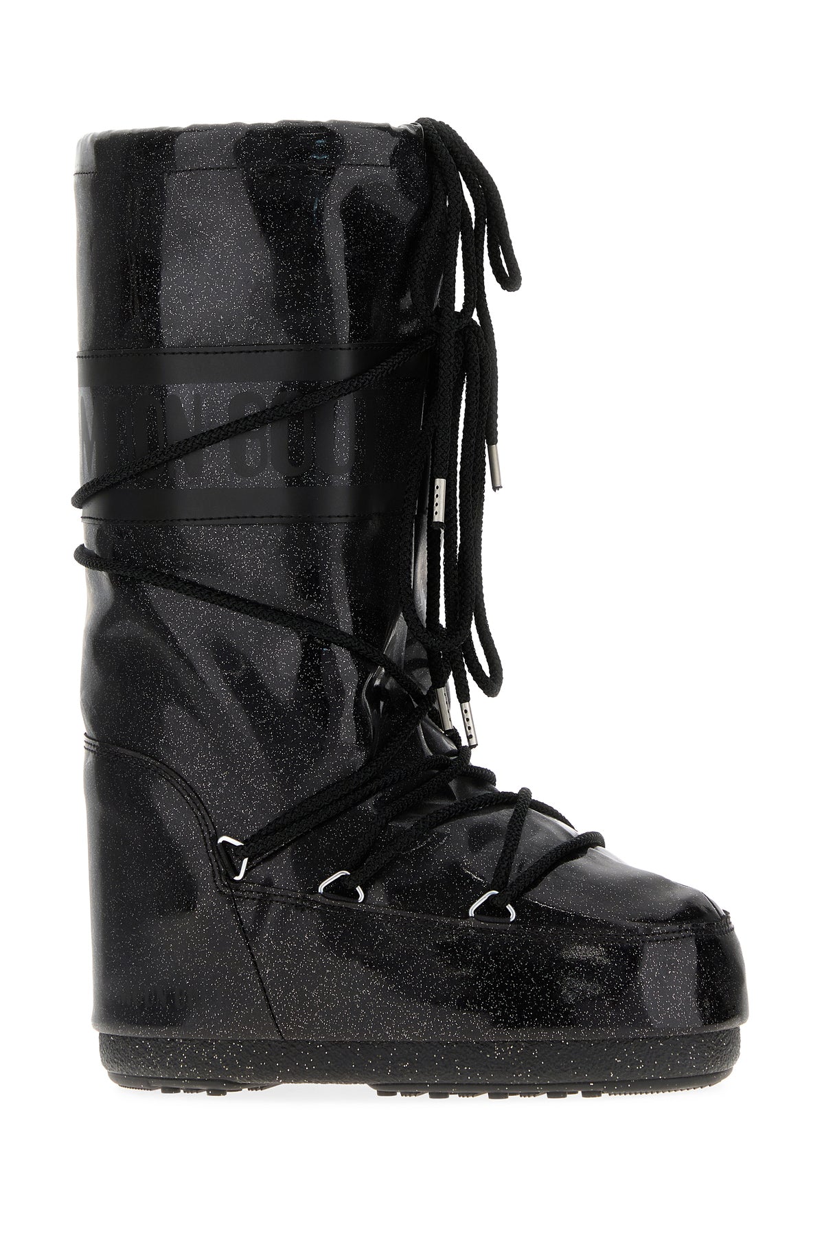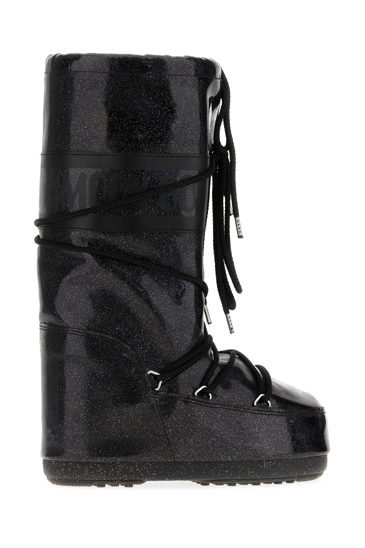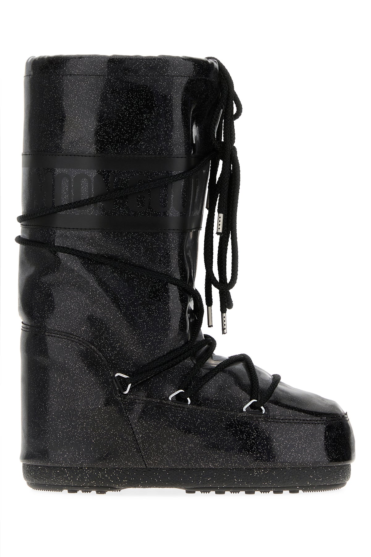 Boots realized in rubber characterized by printed logo at the top and glitter on the entire surface.
