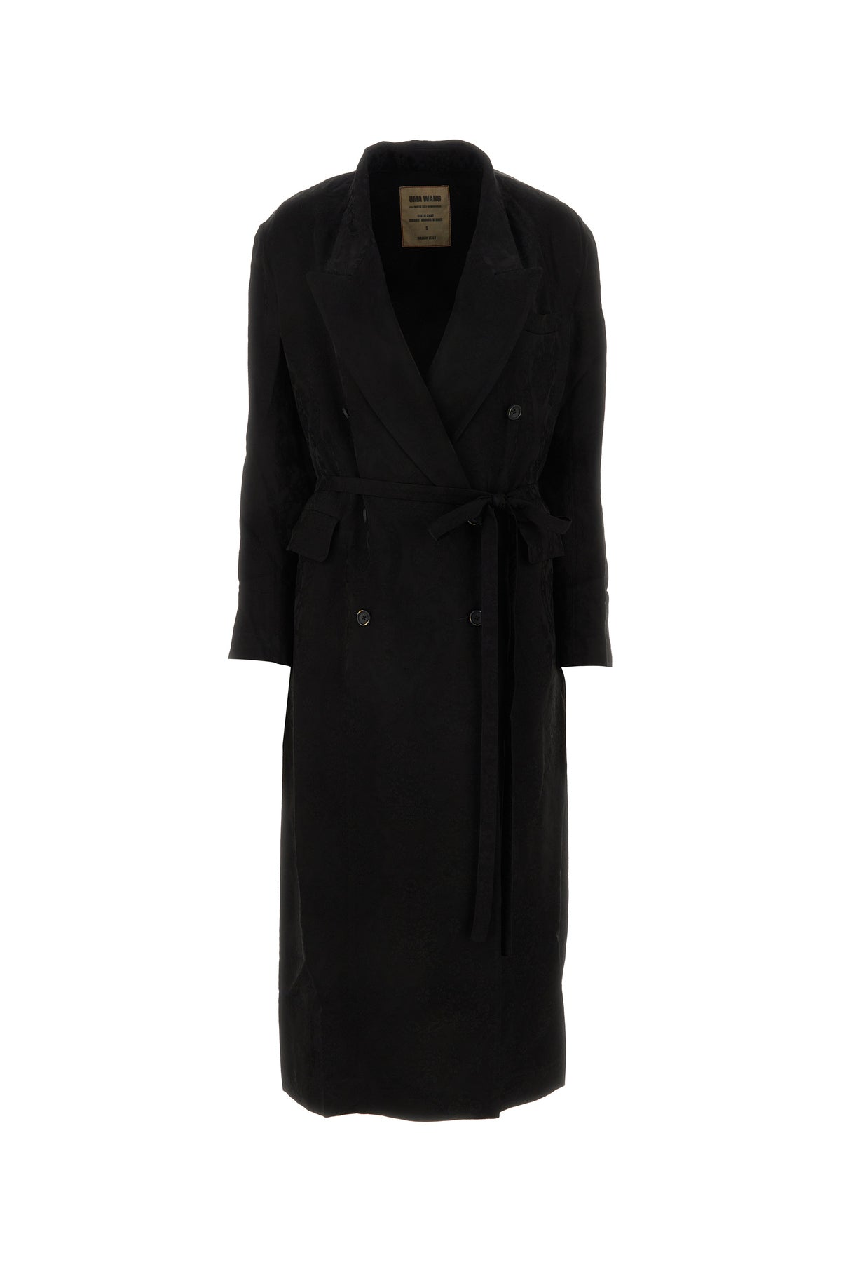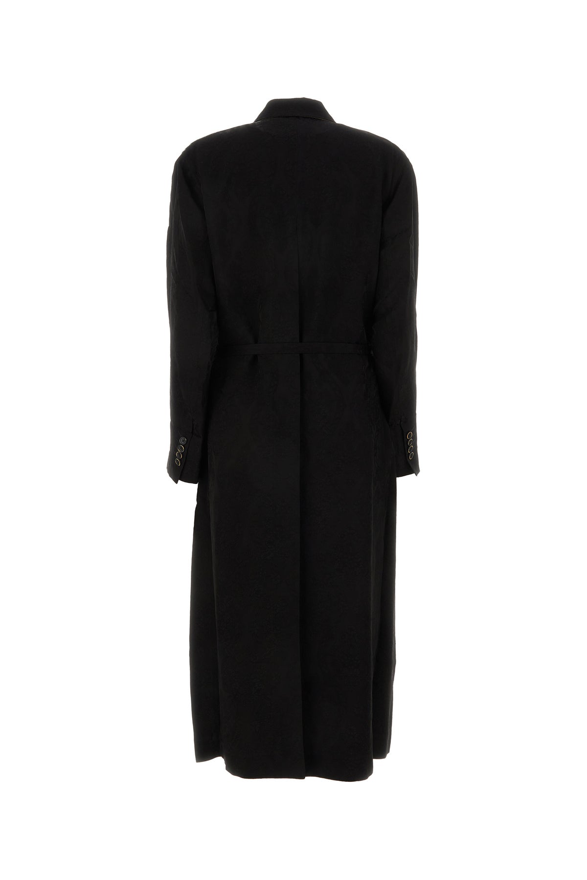 Long-cut coat realized in satin characterized by tonal peculiar embroidery on the entire surface.