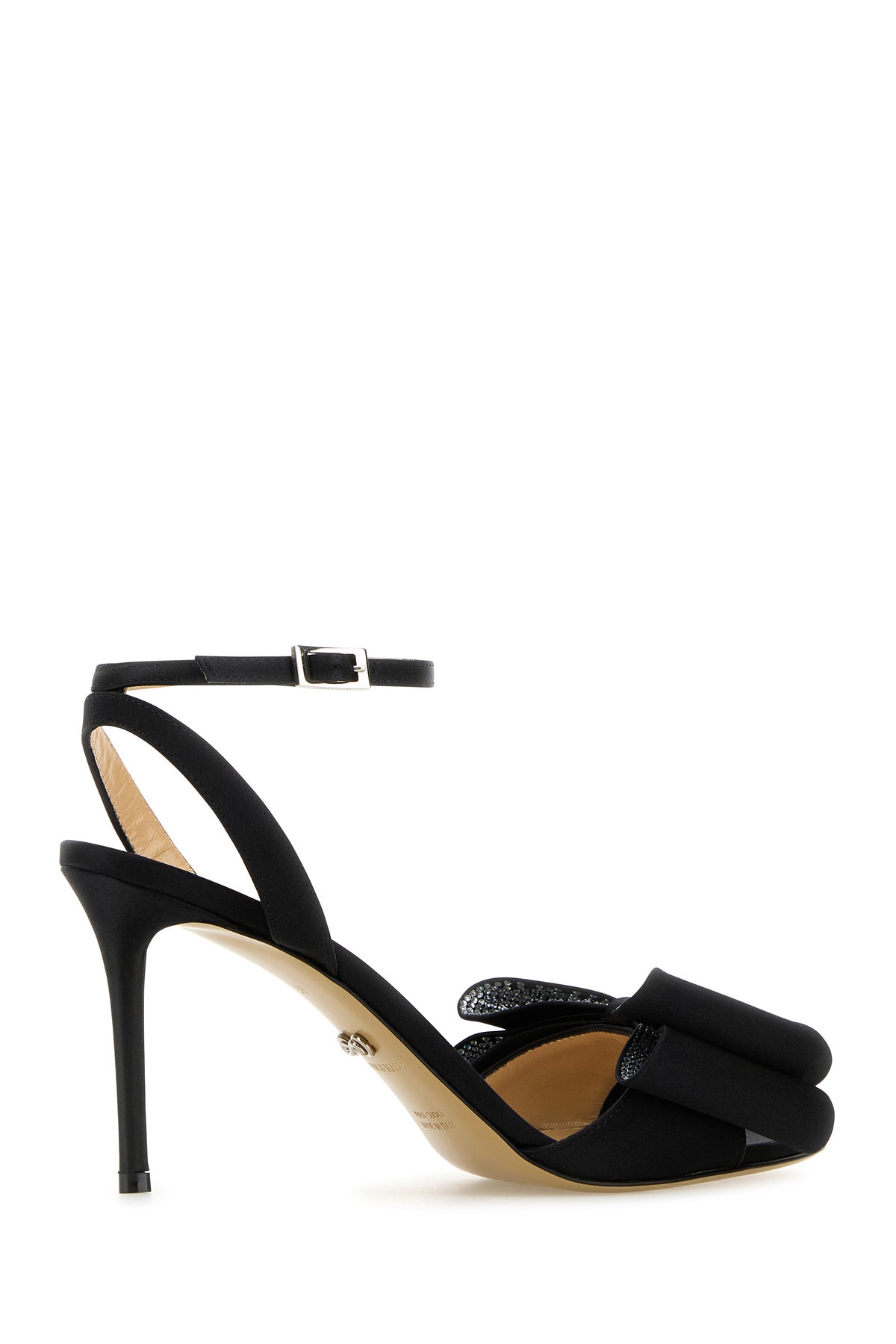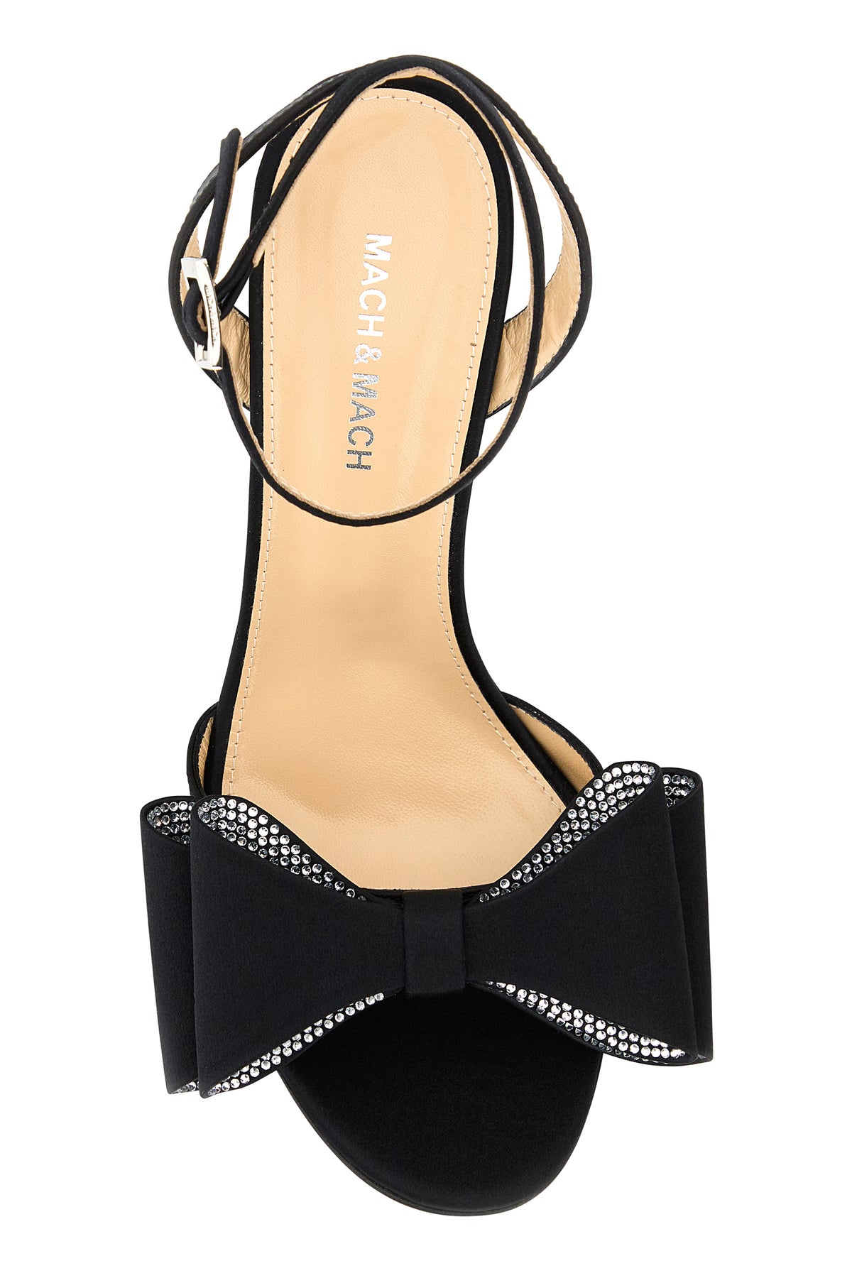 Sandals realized in satin enriched by contrasting decorative bow with rhinestones at the front.