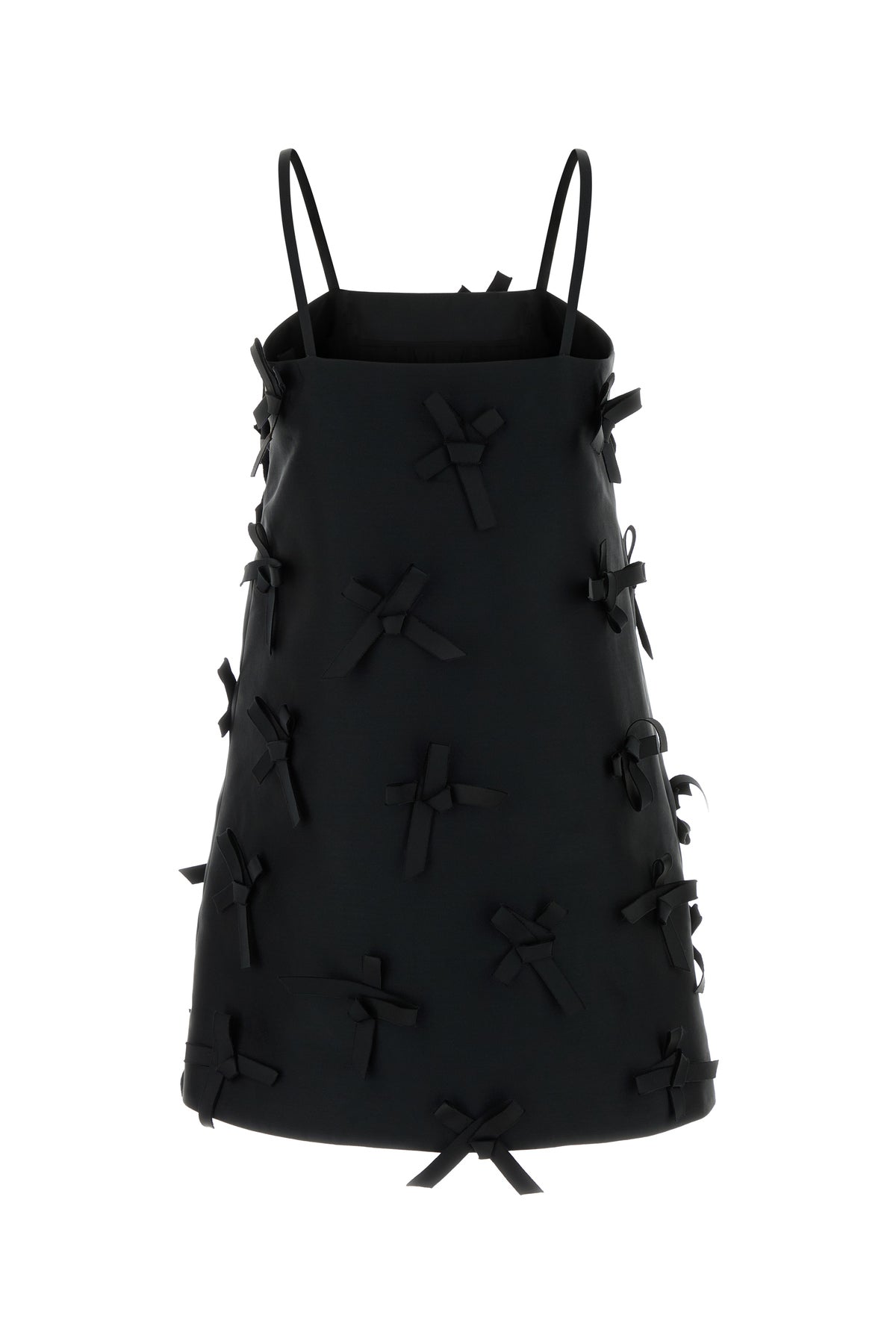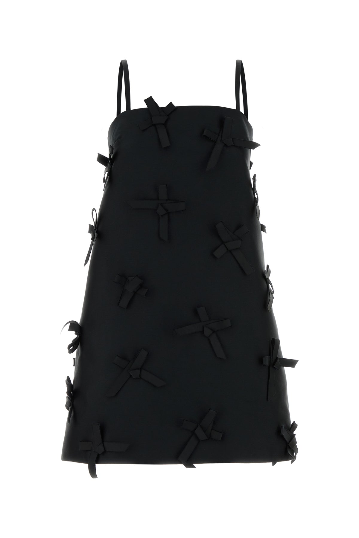Mini dress realized in satin enriched by decorative bows on the entire surface.