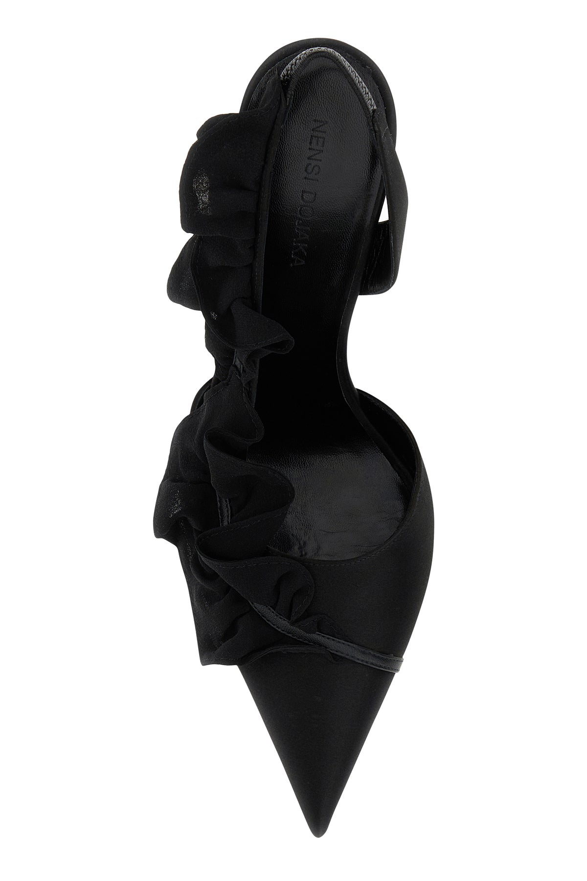 Slingback realized in satin enriched by tonal peculiar fabric patch on the side.