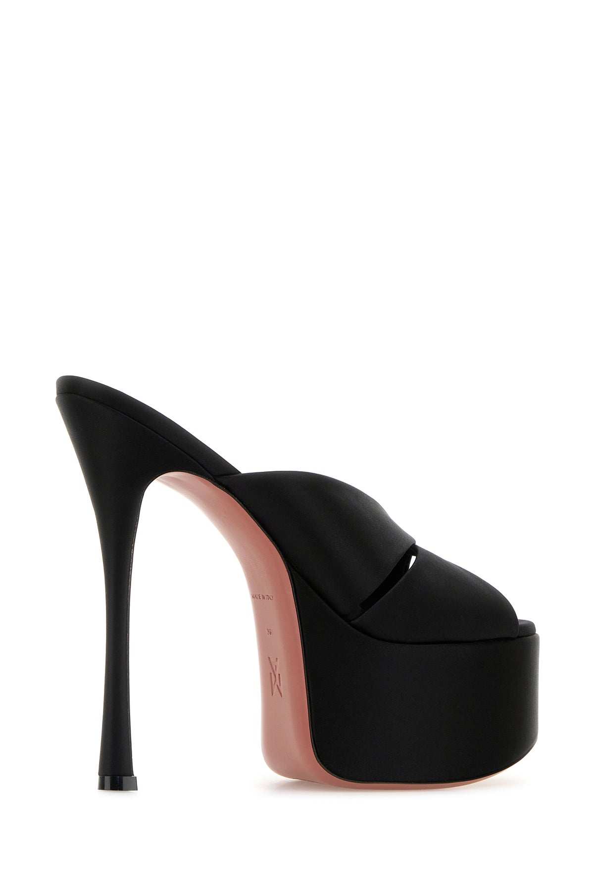 Mules realized in satin characterized by maxi plateau.