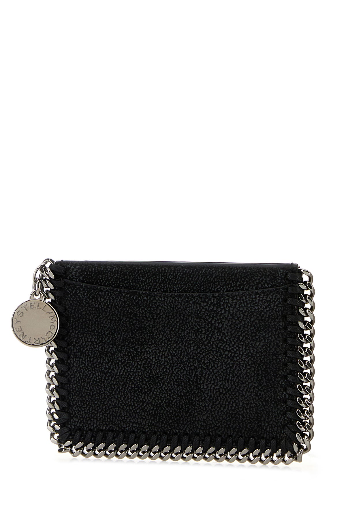 Card holder realized in shaggy deer enriched by metal chain trimming and logoed charm on the side.