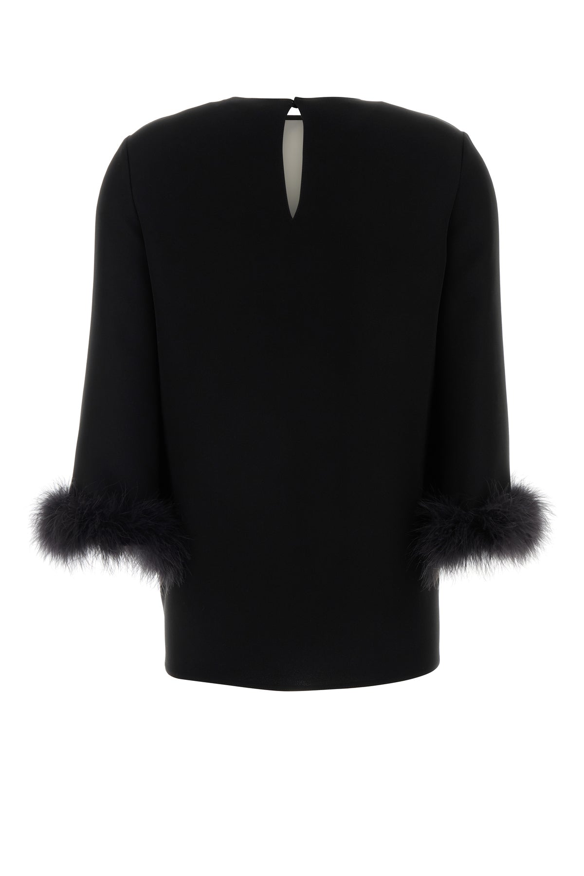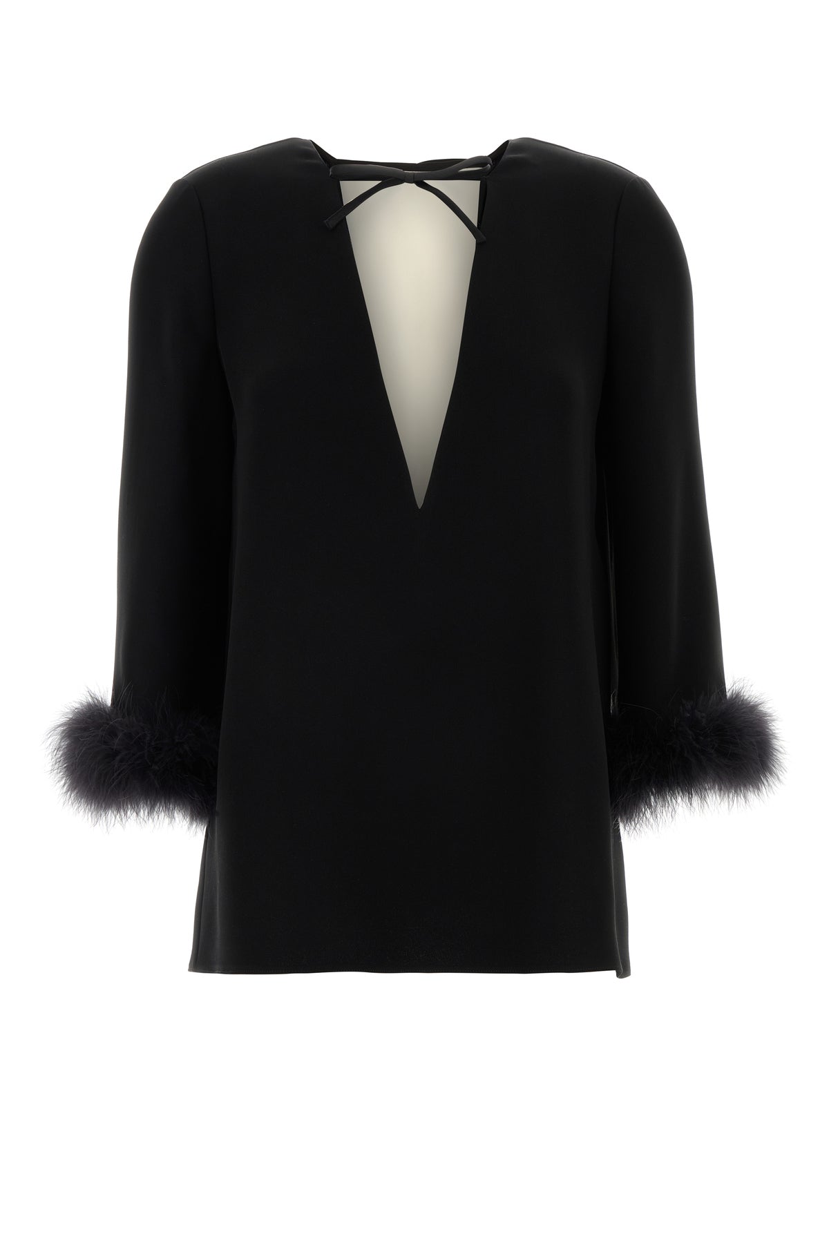 Blouse realized in pure silk enriched by feathers on the cuffs.