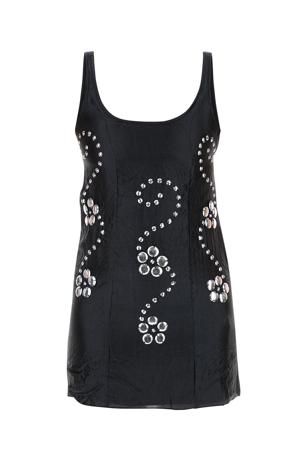 Mini dress realized in pure silk enriched by metal studs at the front.