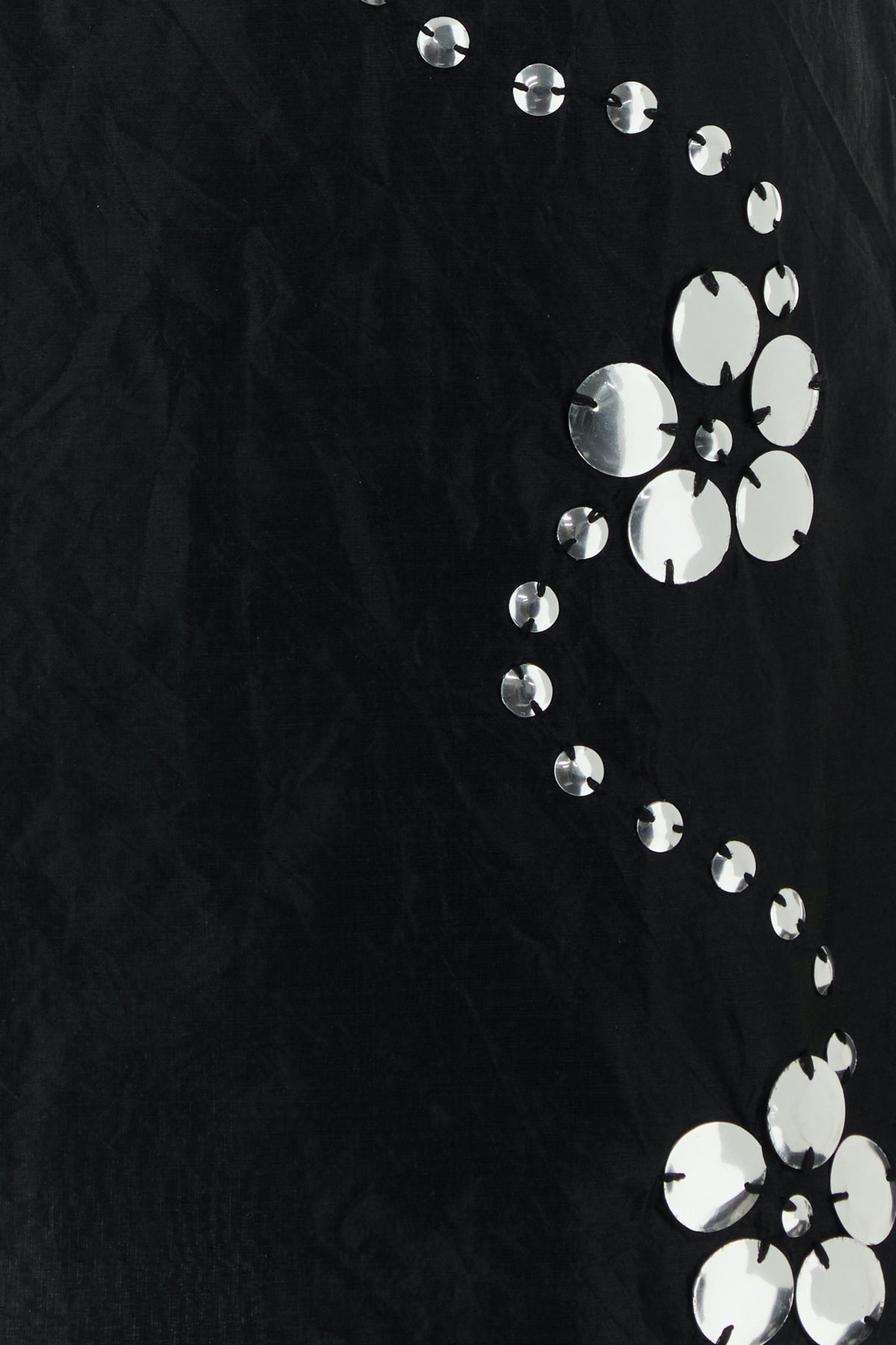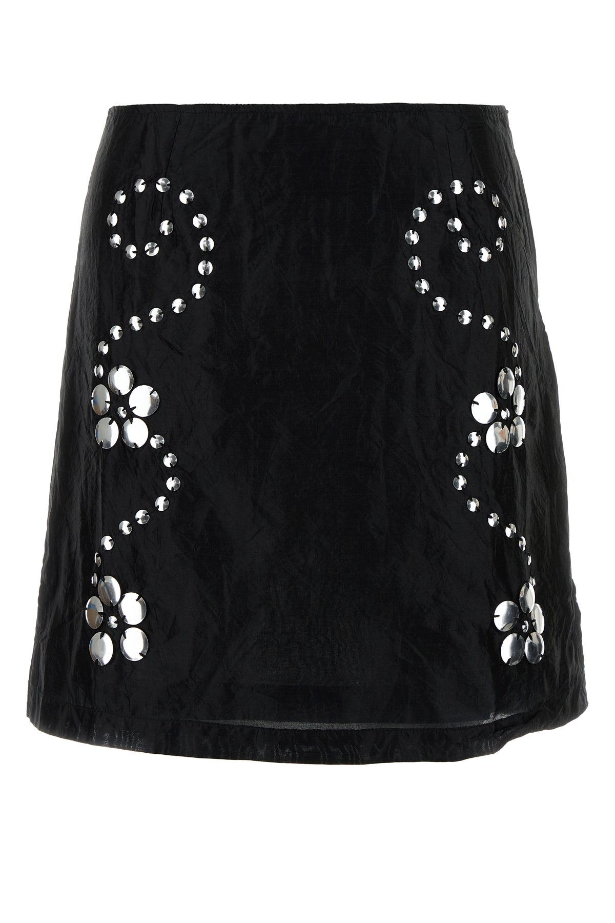 Mini skirt realized in pure silk enriched by metal studs at the front.
